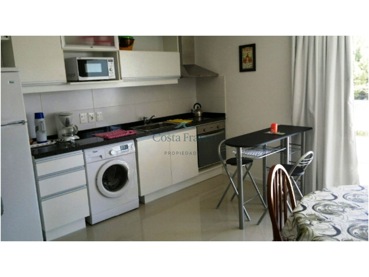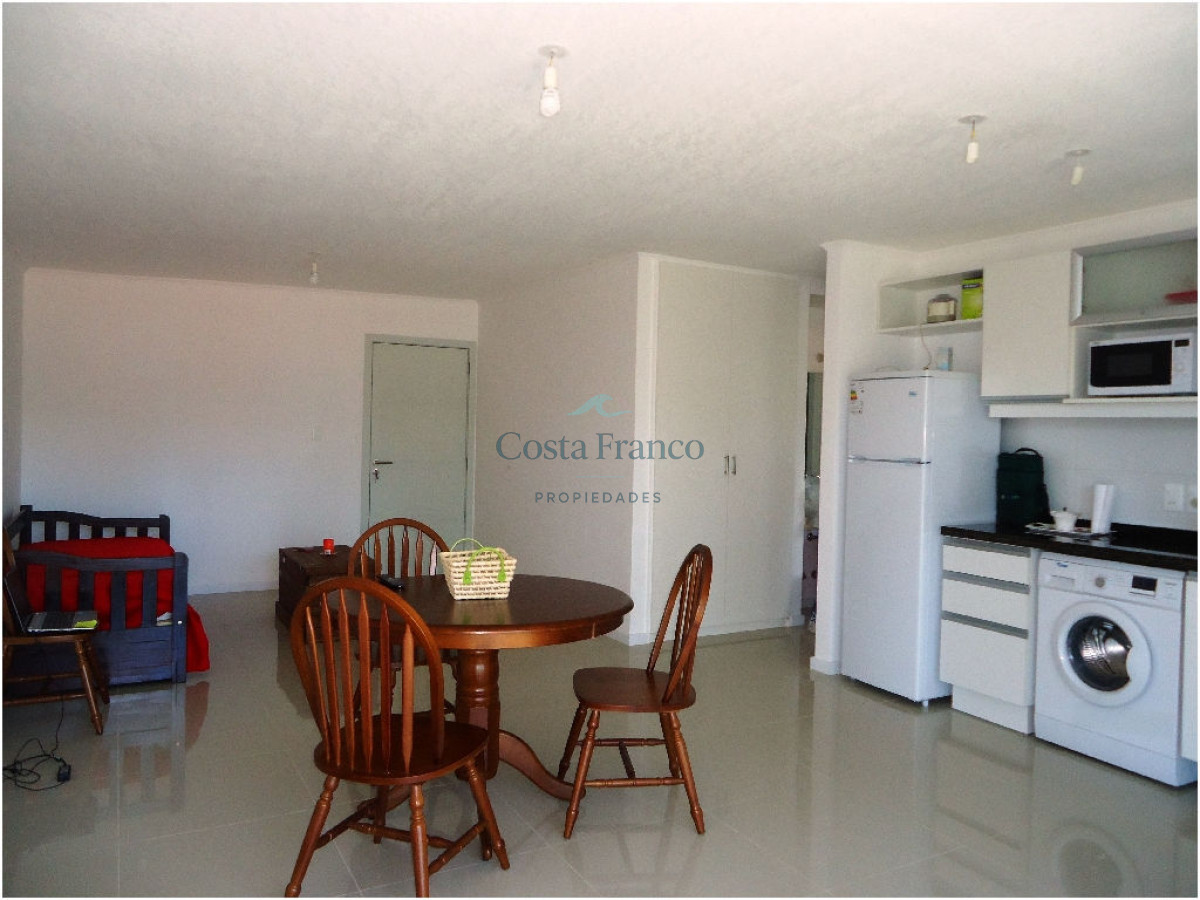Cuenta con 1 dormitorio, 1 baño, cocina integrada, living comedor, terraza y cochera.