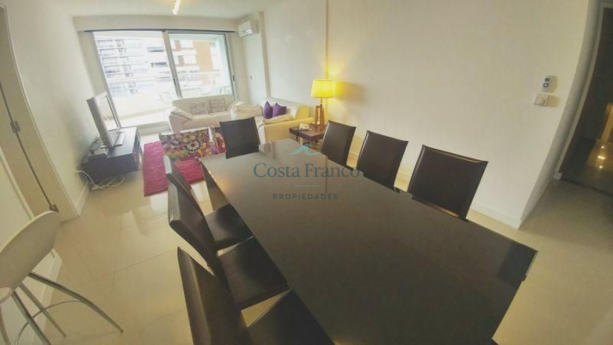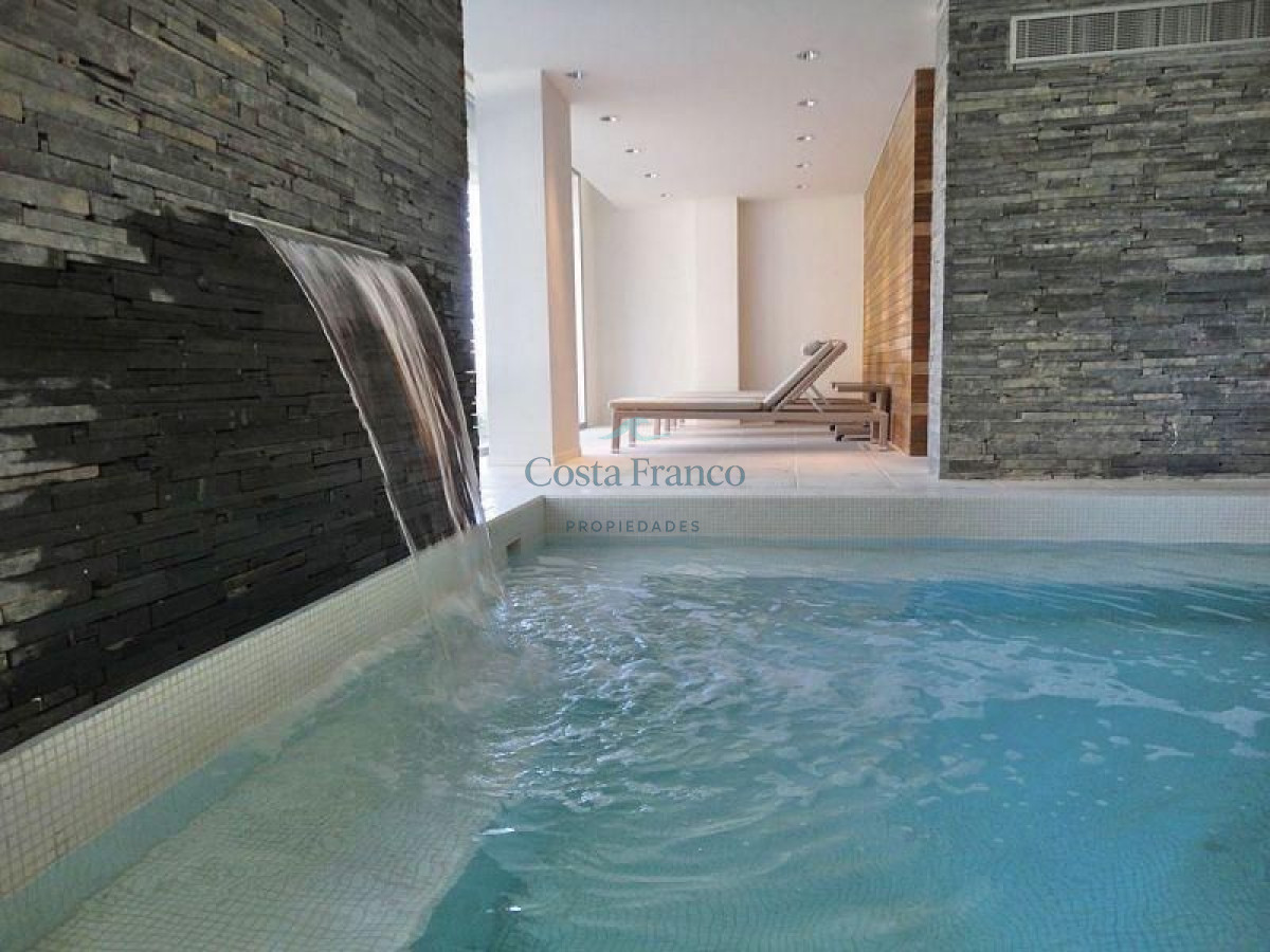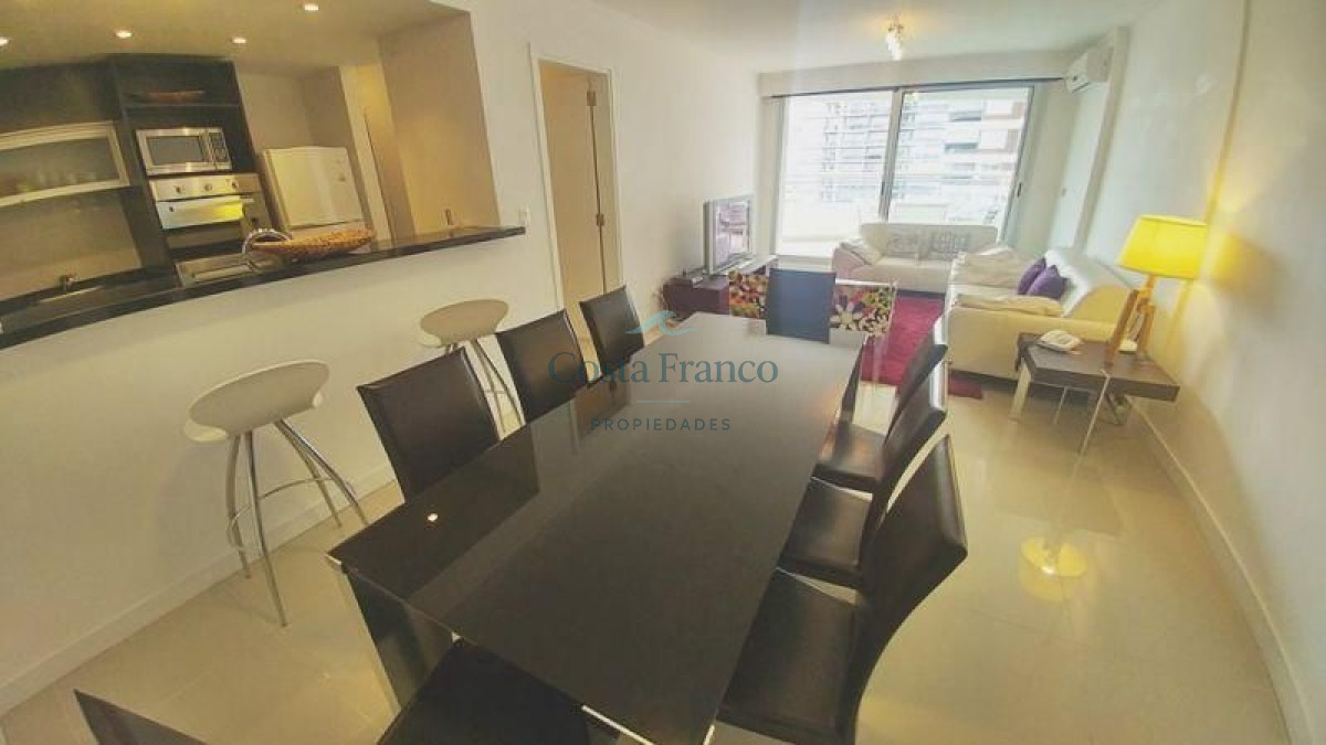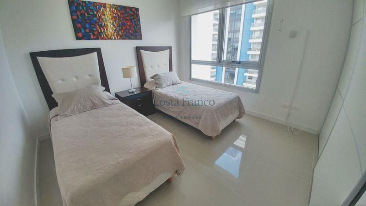 OPORTUNIDAD DESTACADA! Amplios ambientes. 3 dormitorios, 2 baños completos. Suite comoda, amplio living comedor con cocina integrada, balcón y garaje en subsuelo. La torre cuenta con amenities de primera categoría, entre los cuales se destacan: piscina interior climatizada, sauna, sala de notebooks, playroom para niños y adolescentes, gimnasio, 6 barbacoas totalmente equipadas, área de fogón, 2 piscinas exteriores, solarium, mucama, recepción las 24 hs. El apartamento se vende con muebles básicos. Superficie total incluye circulaciones y cochera.