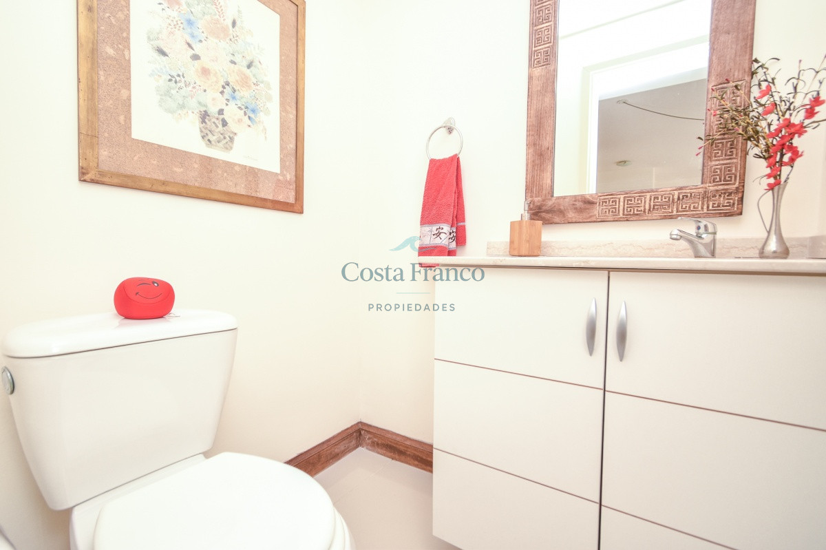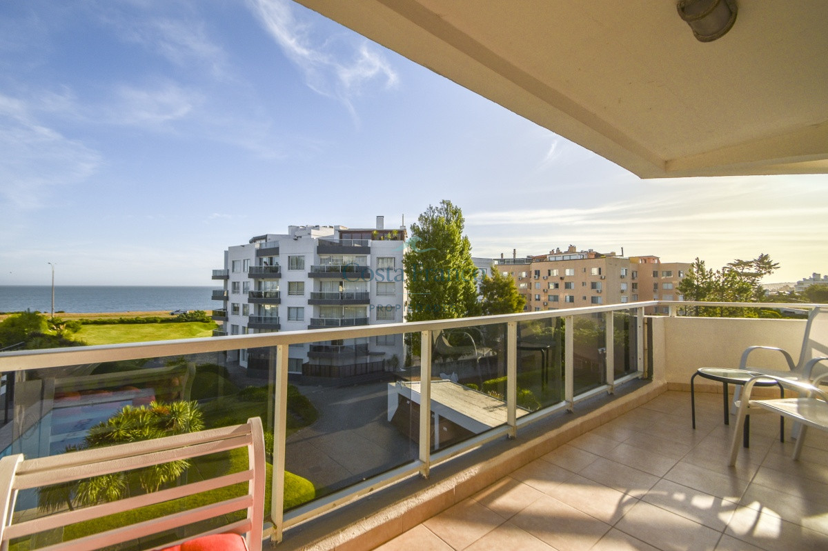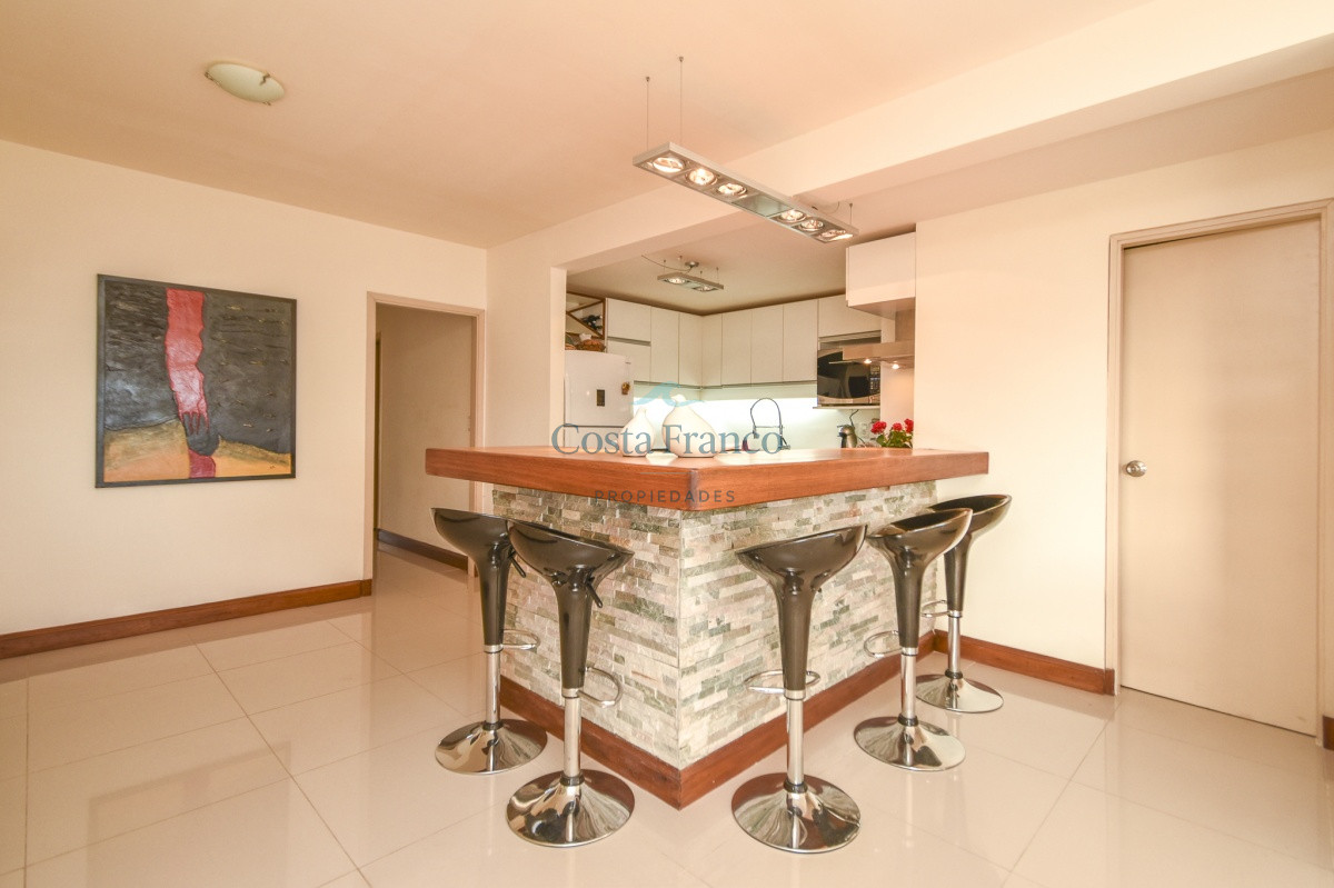 Excelente planta, con amplios espacios y vista al mar. Dispone de tres dormitorios, dos baños completos, el principal en suite más toilette de visitas. Espacioso y luminoso living comedor con salida al balcón mirando al mar y parrillero propio techado. Cocina tipo americana, bien equipada con desayunador.