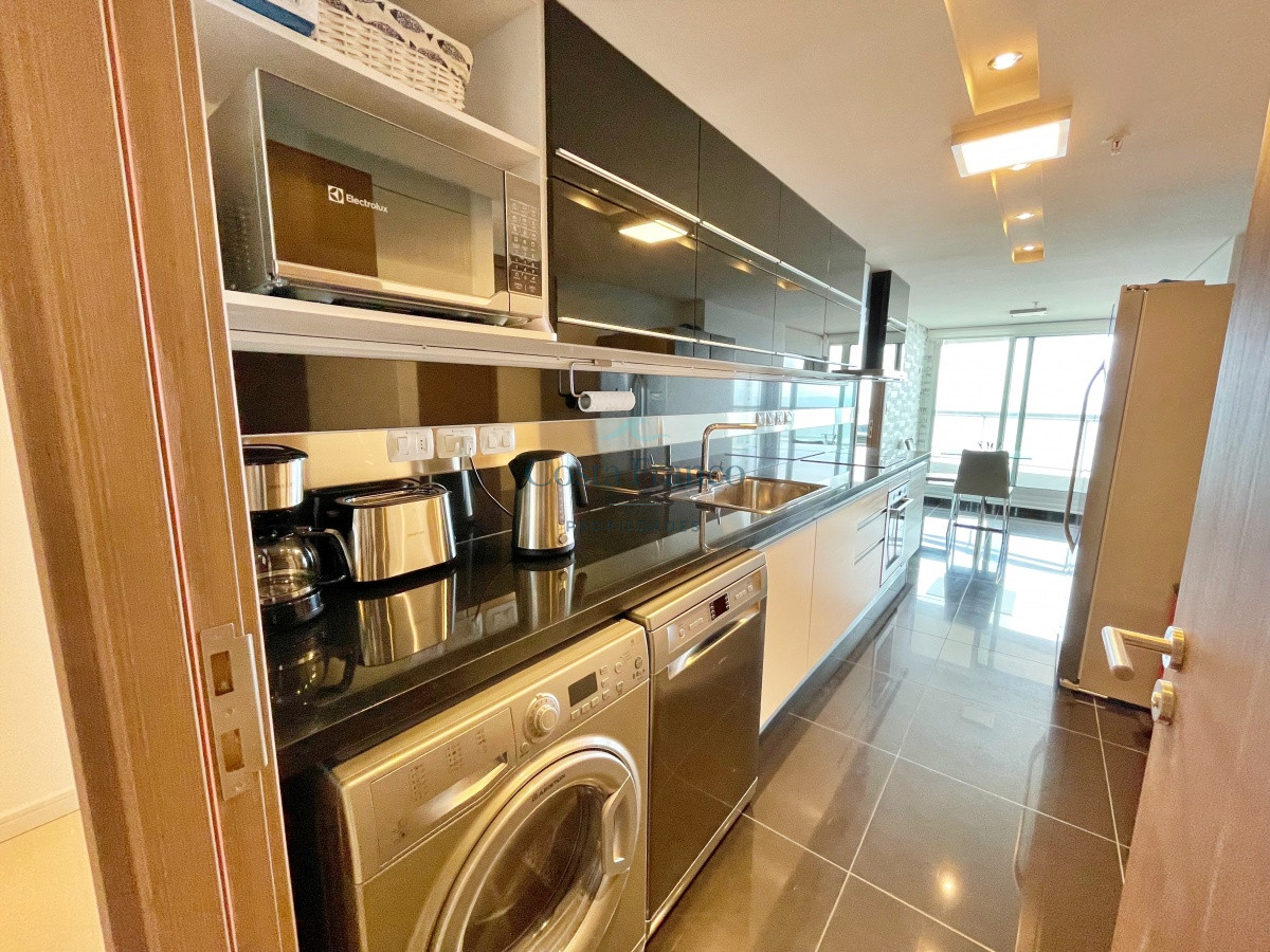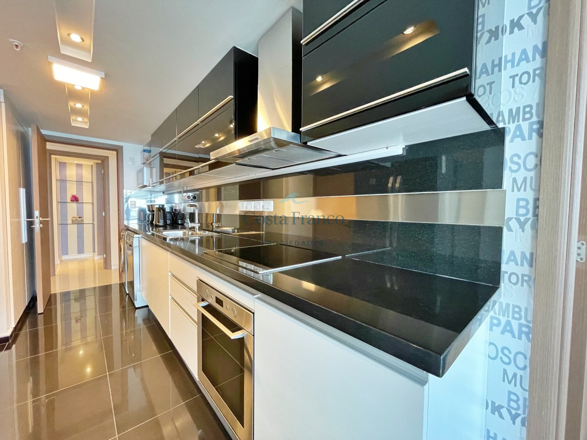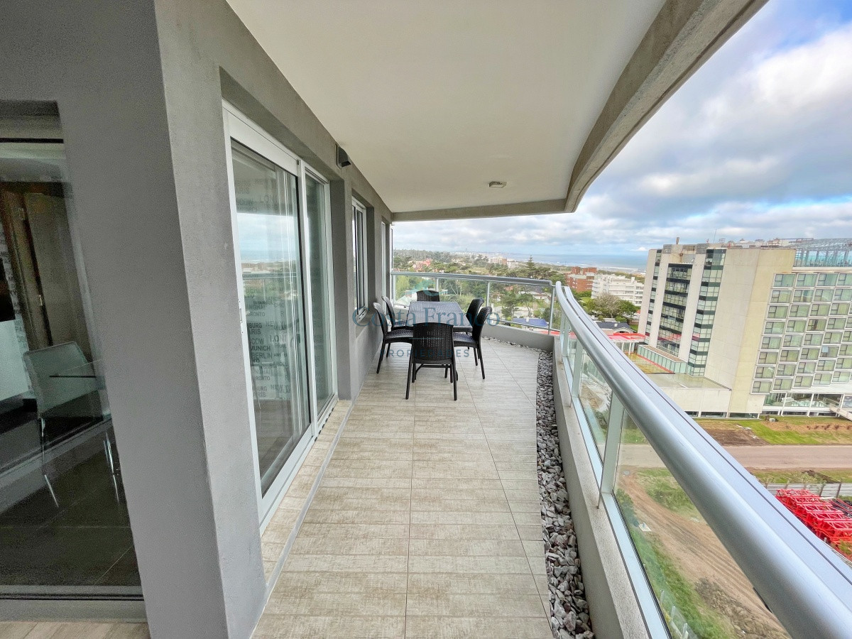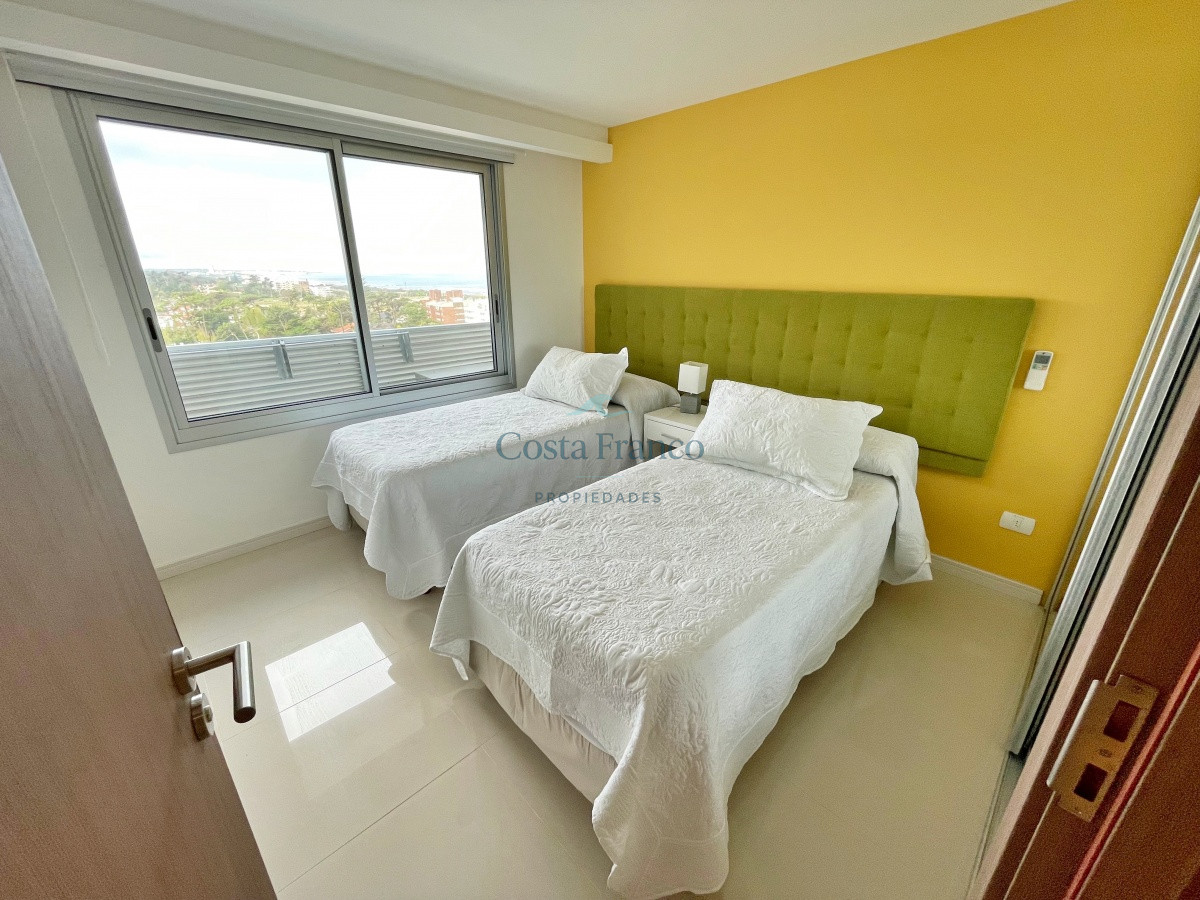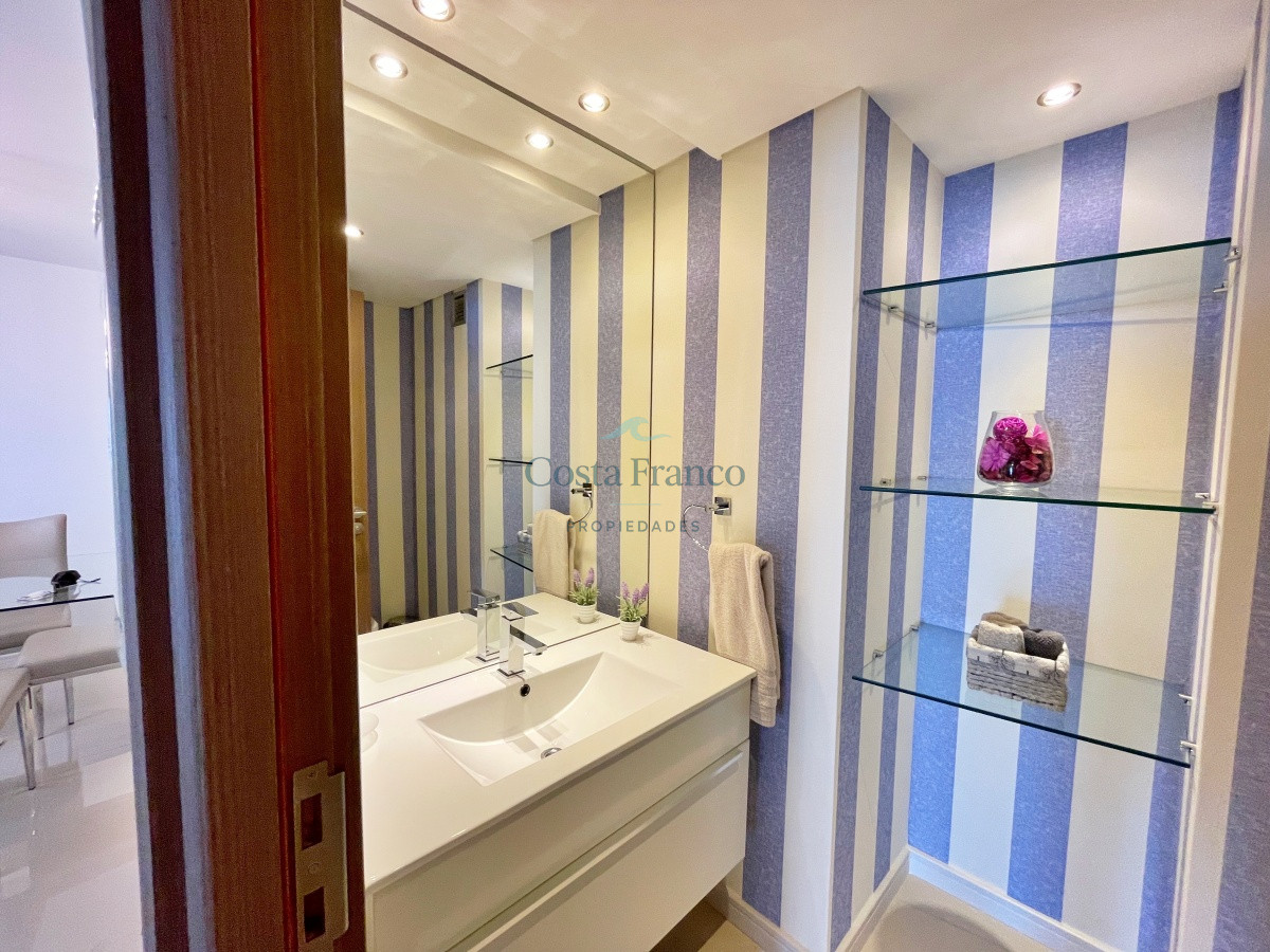 Vista al mar, living comedor, toilette, amplia terraza con parrillero, tres dormitorios, dos baños uno en suite, cocina con comedor diario y garage.
