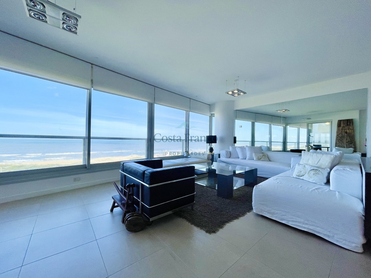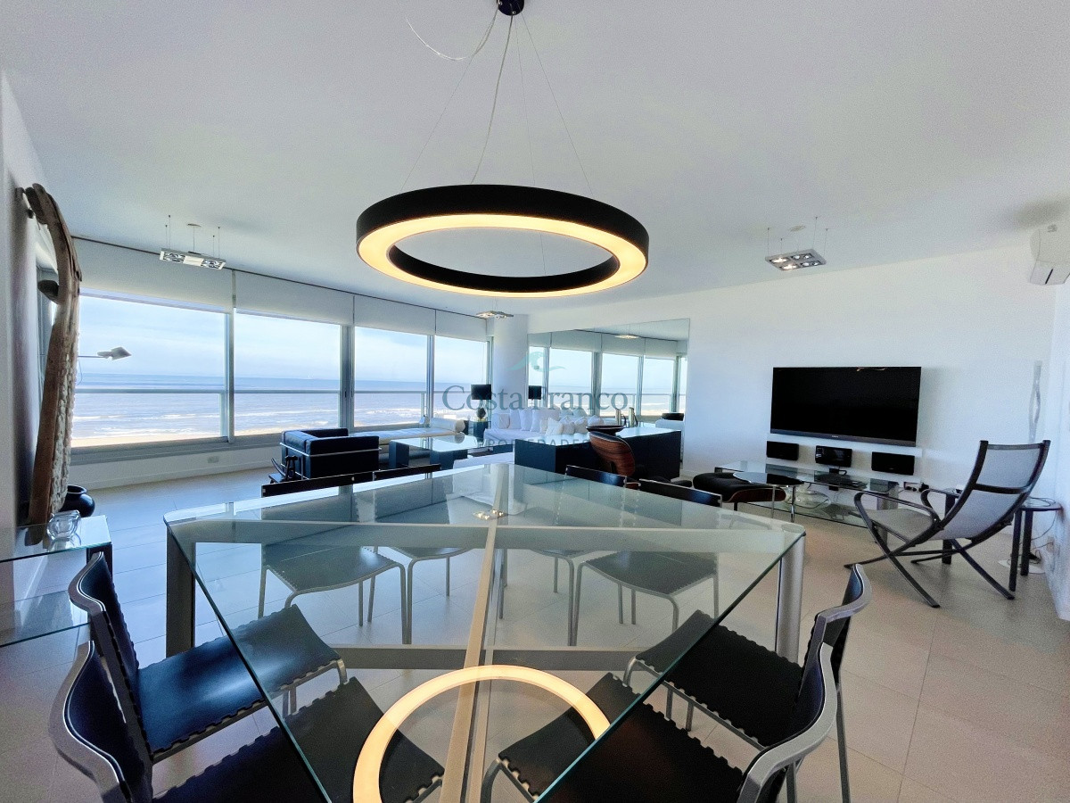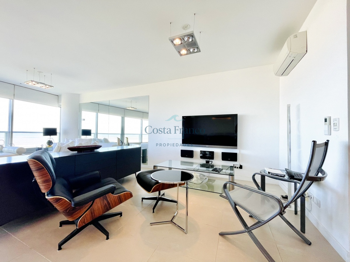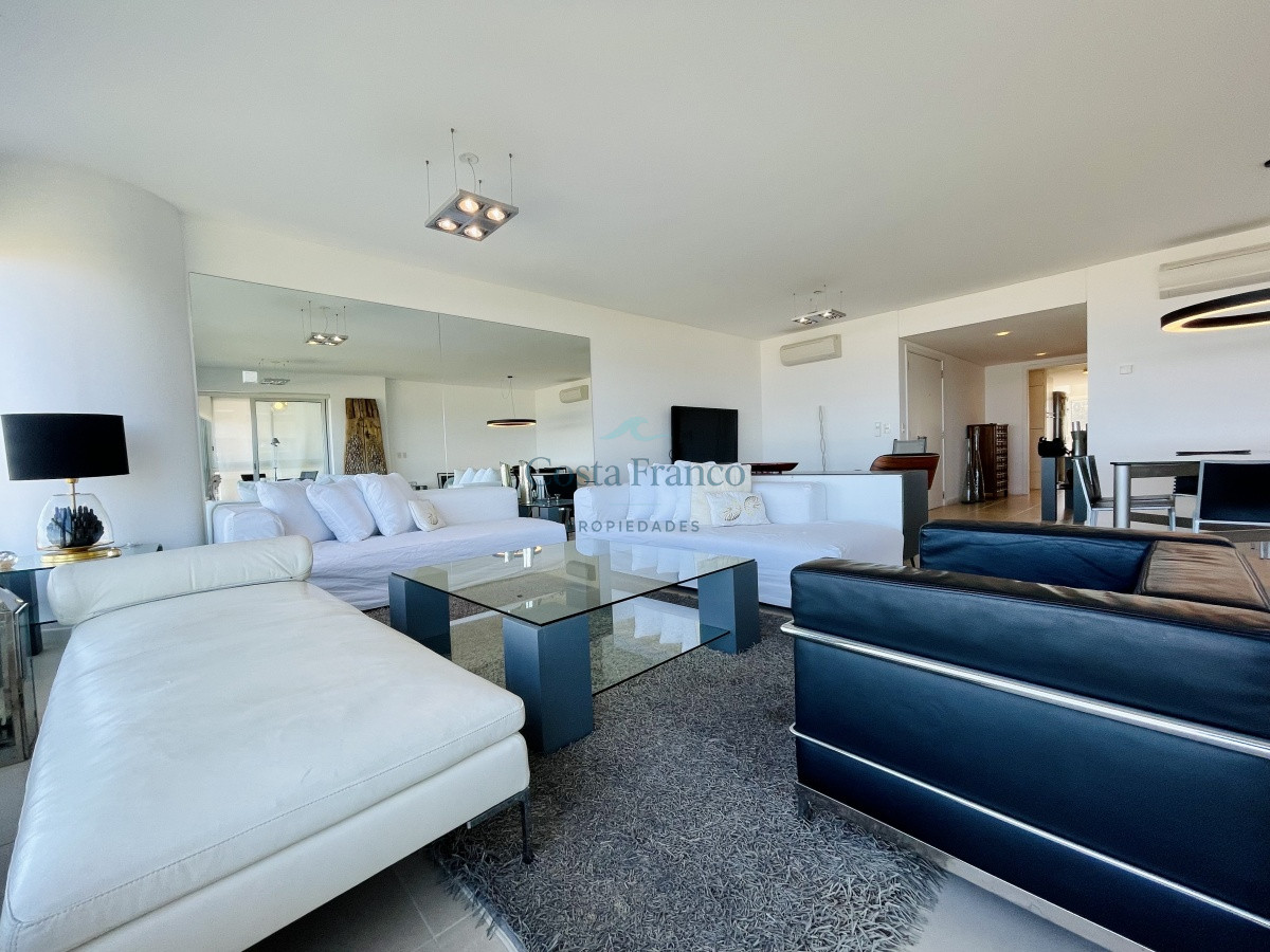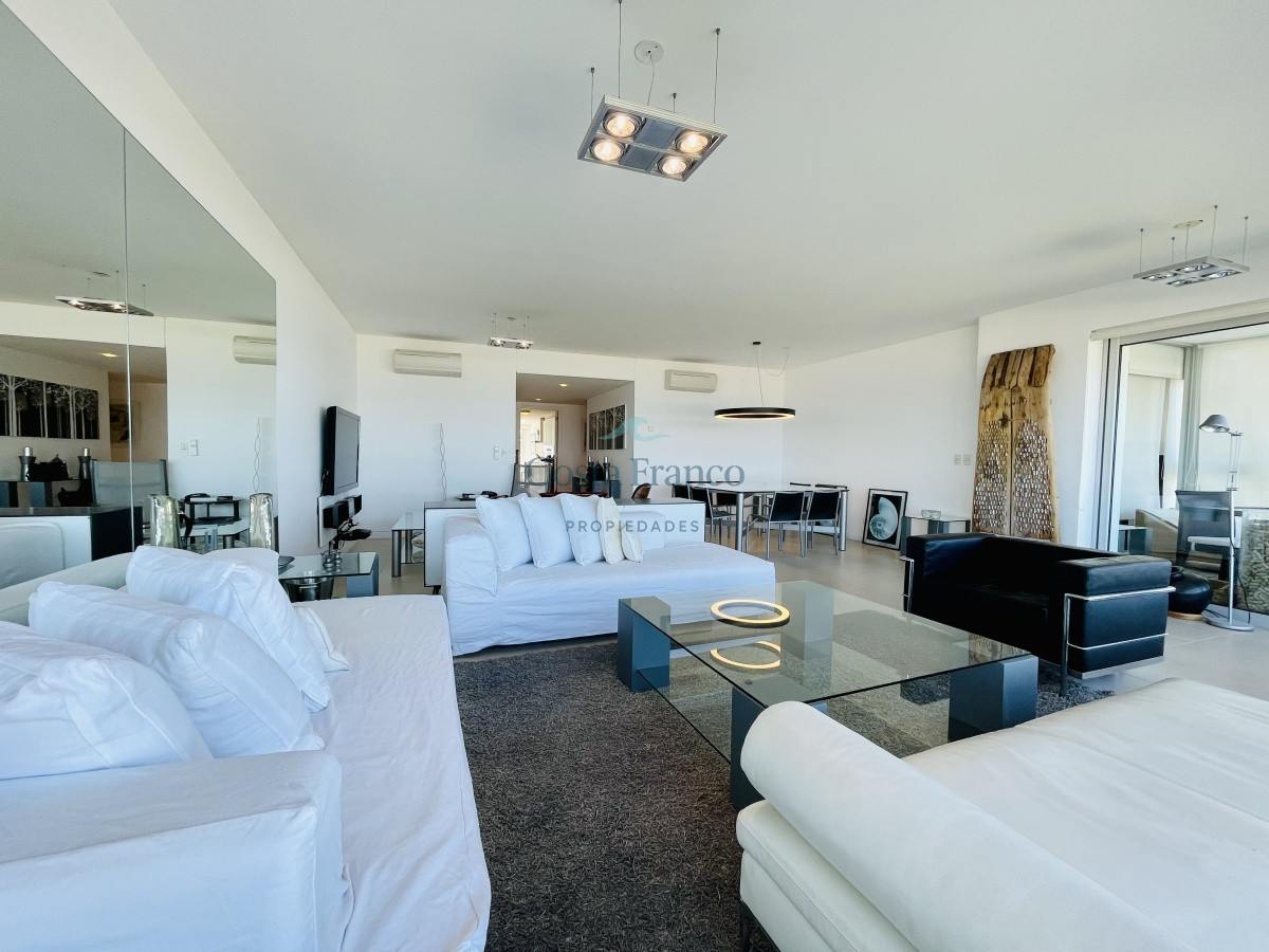 Venta y alquiler de departamento esquinero de tres dormitorios mas dependencia de servicio, Torre LE PARC, playa Brava. Punta del Este