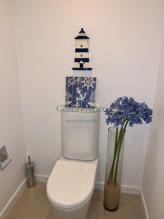 Gran living comedor con hermosa vista a la playa e Isla de Lobos. Toilette de recepción.