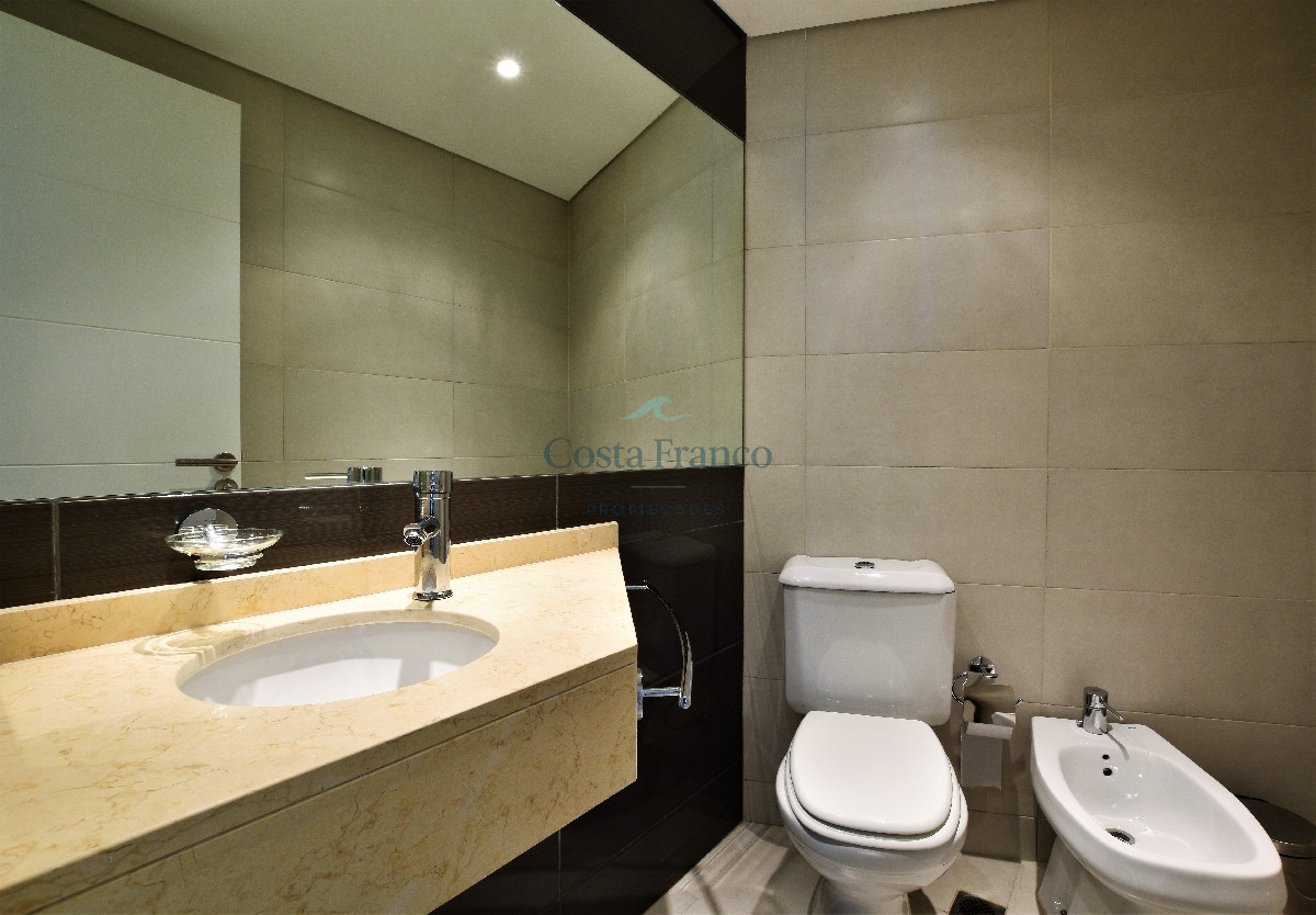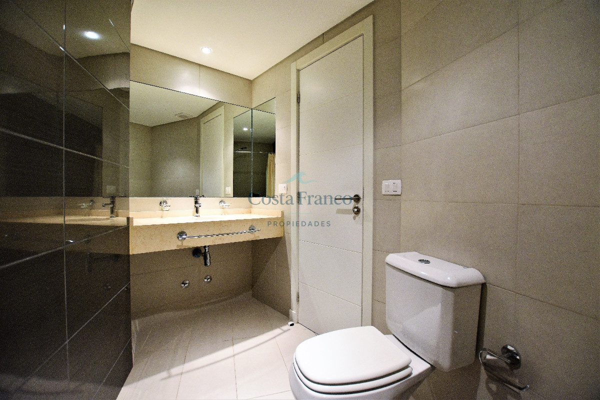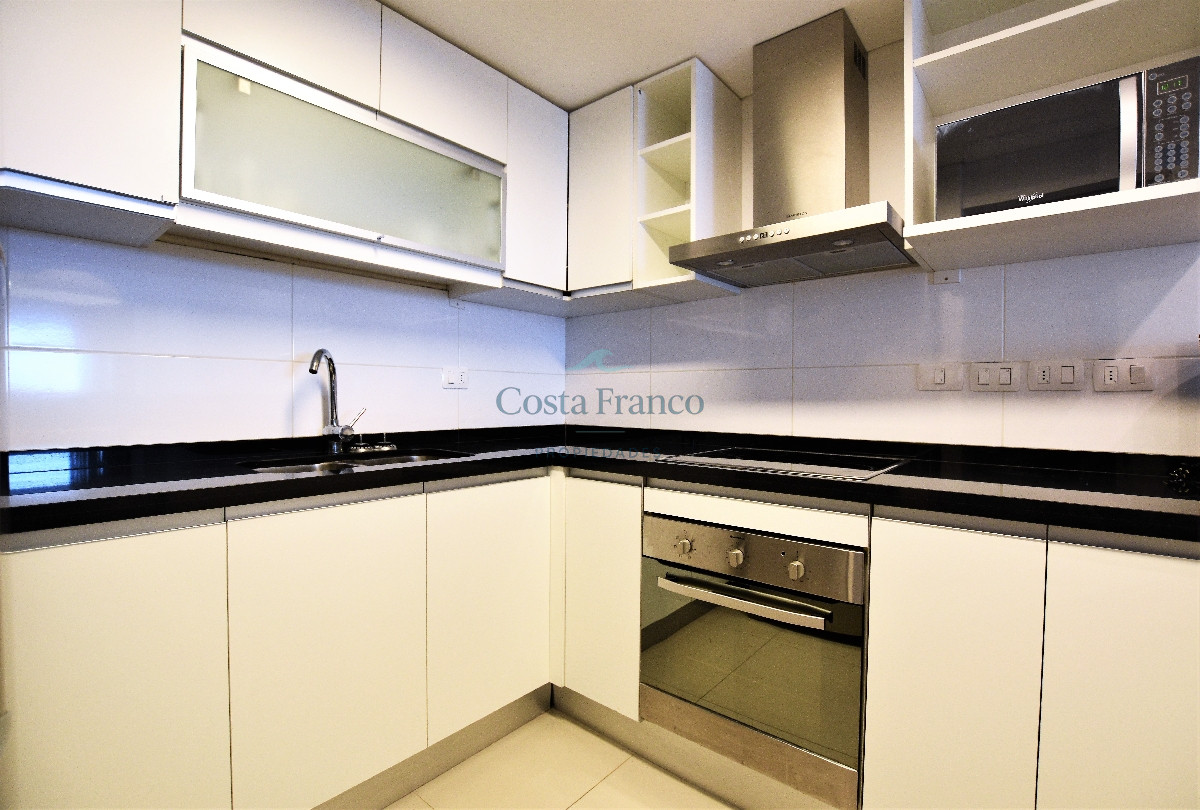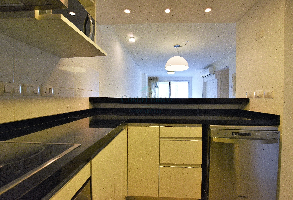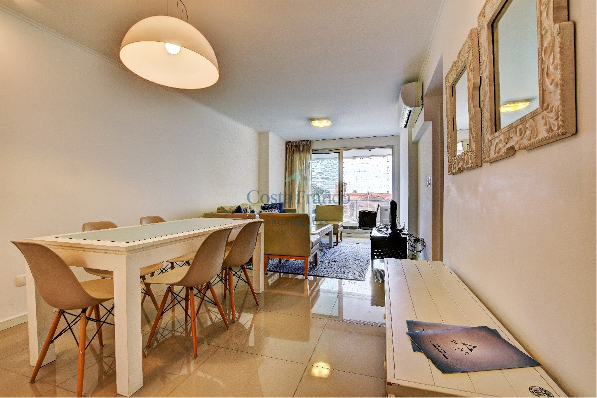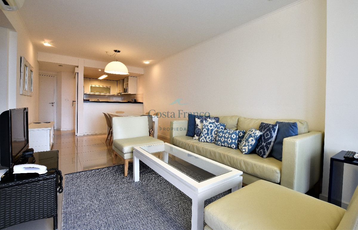 Balcón abierto, living-comedor, cocina americana con barra, 2 dormitorios, 2 baños, 1 suite, garaje; recepción 24 horas, servicio de mucamas, servicio de playa.
