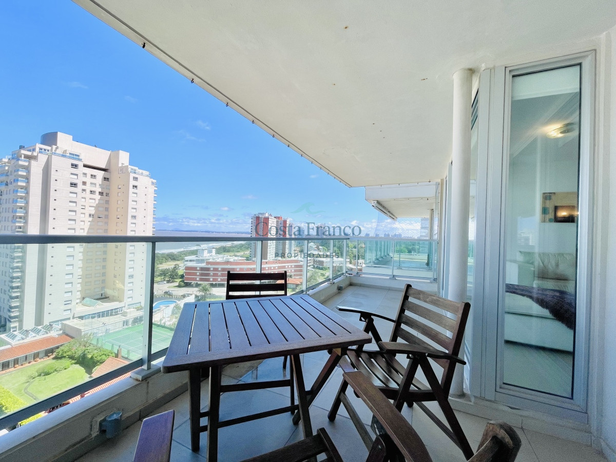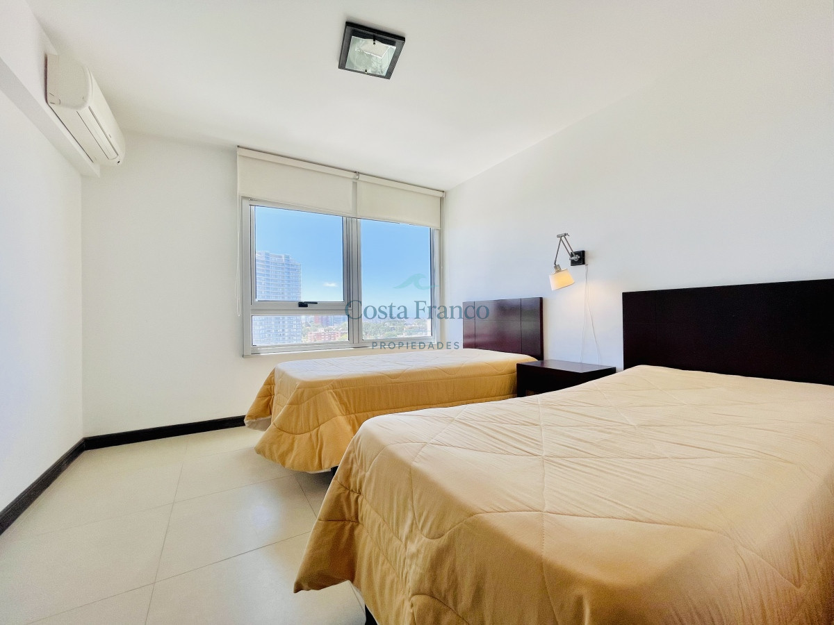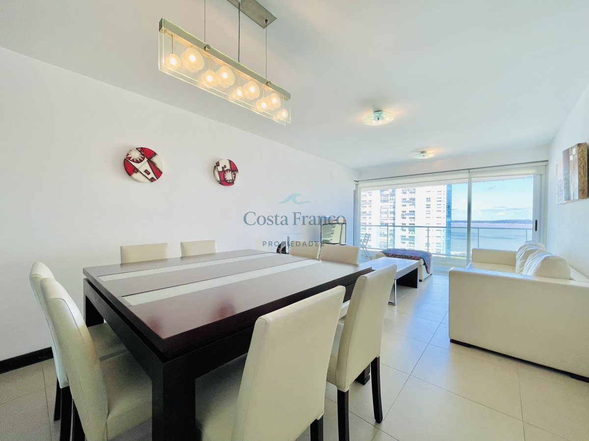 Venta y alquiler temporario de apartamento piso alto en torre con variedad de servicios en Playa Mansa, Punta del Este.