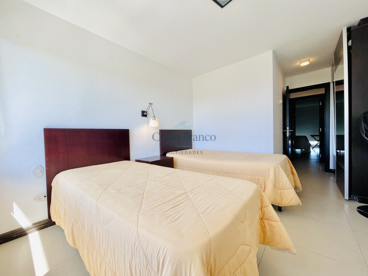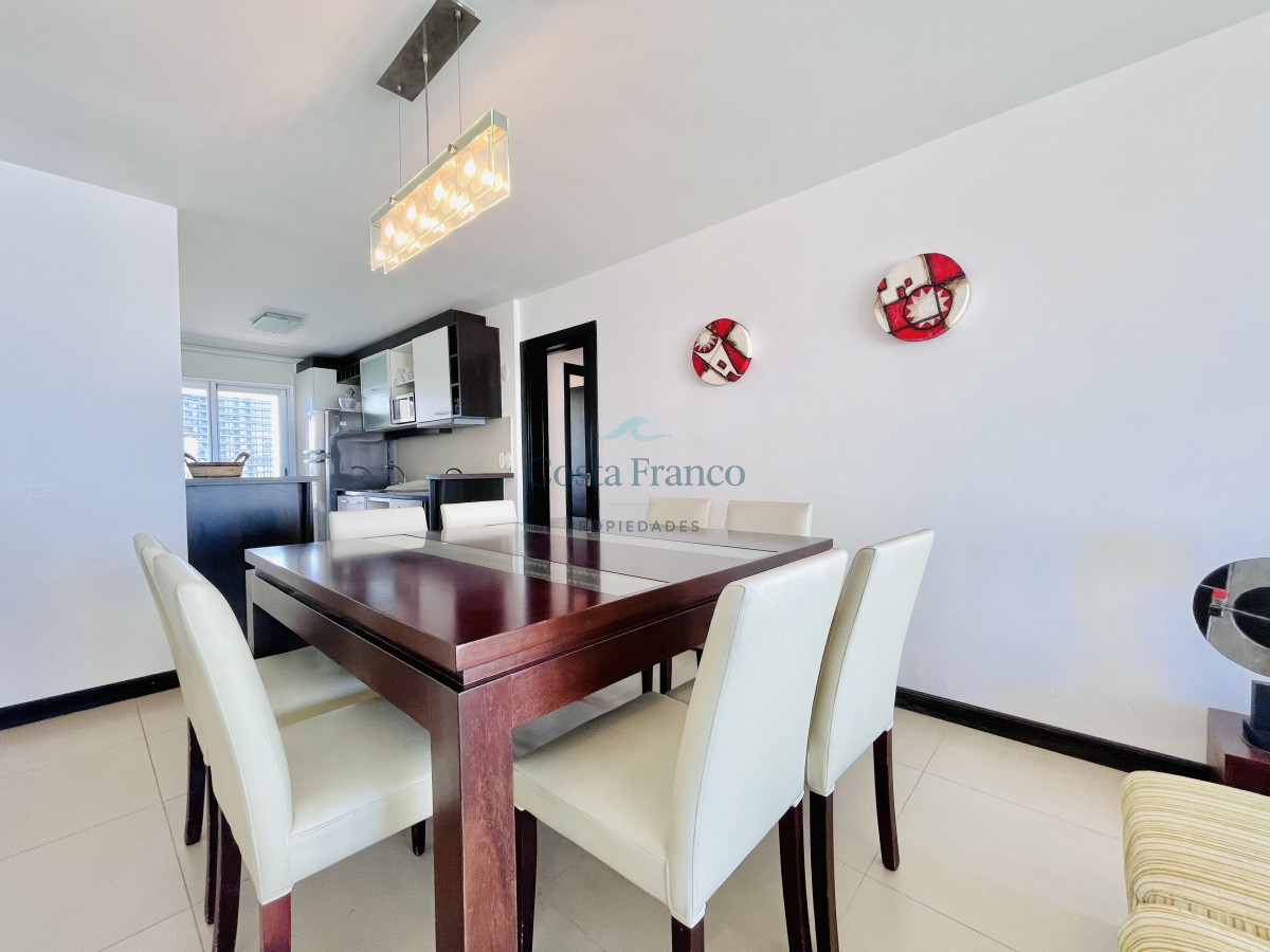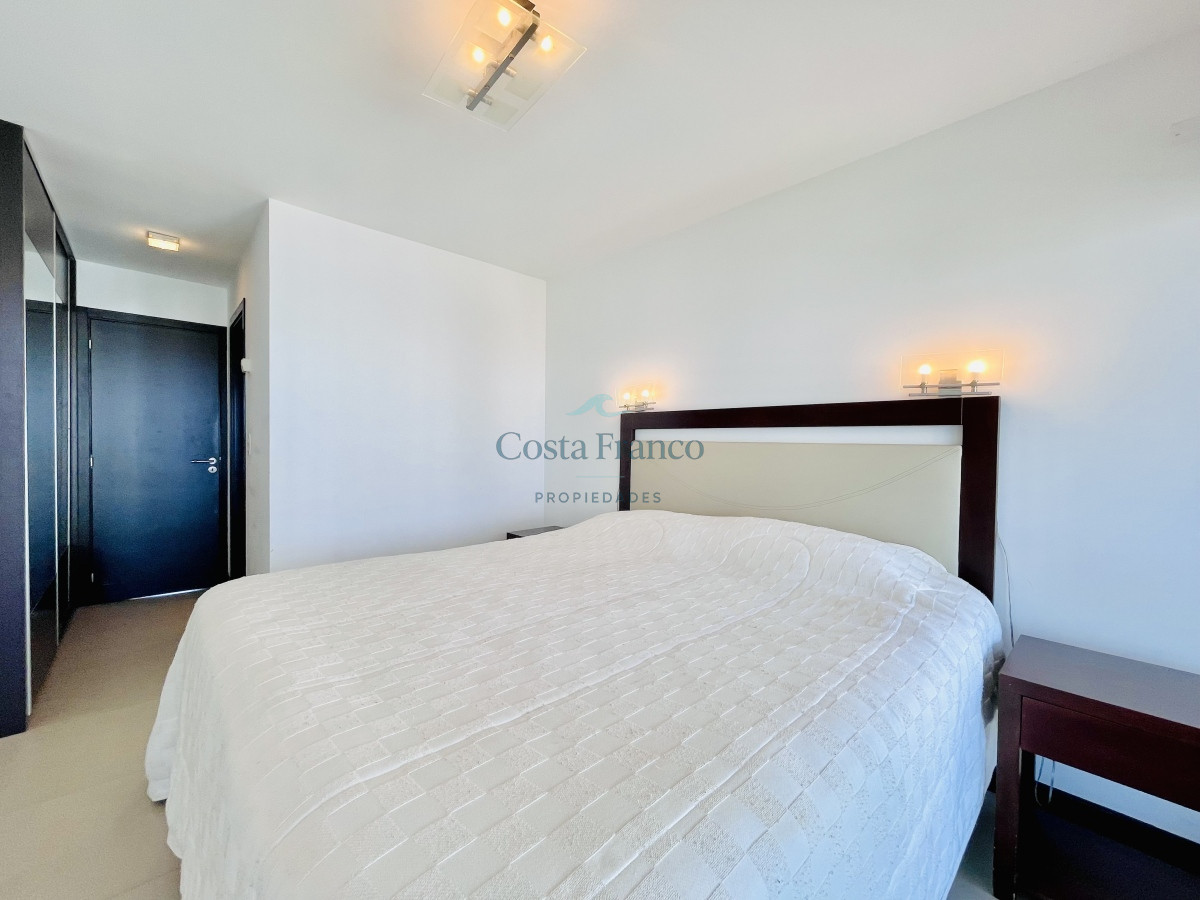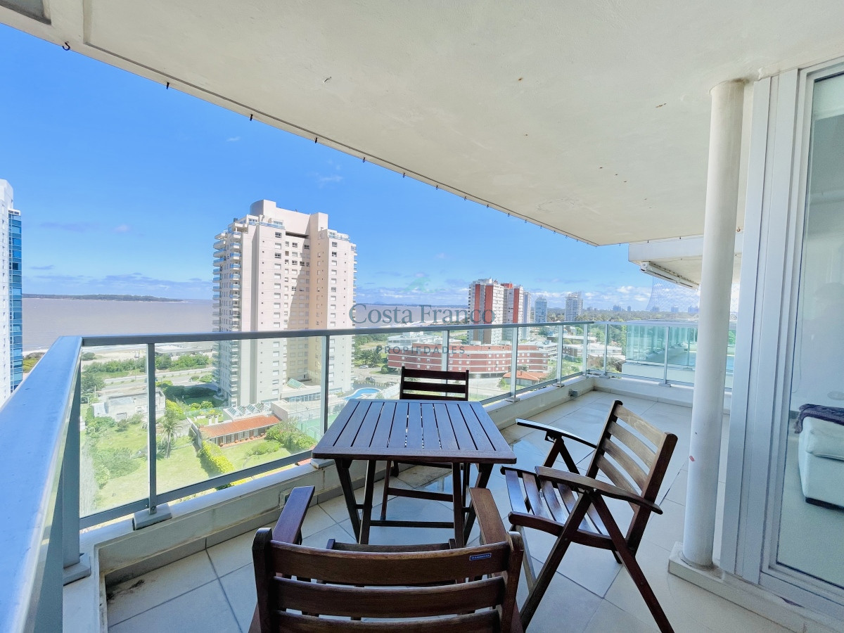 Venta y alquiler temporario de apartamento piso alto en torre con variedad de servicios en Playa Mansa, Punta del Este.