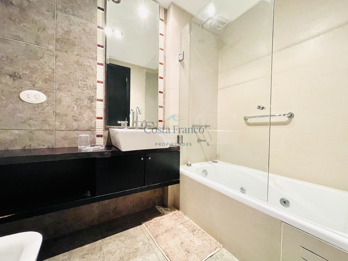 A pasos del Mar y de los centros comerciales, se encuentra esta torre moderna con muy buena vista. El edificio con servicio de recepción permanente, servicio de mucamas diario, servicio de playa en verano. Piscina abierta semi climatizada, gym, saunas, jacuzzy interior, sala de niños, sala de adultos, barbacoas cerradas, cancha multi deportes.