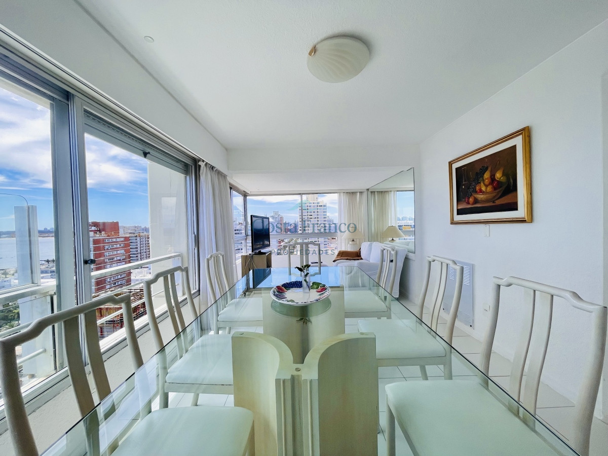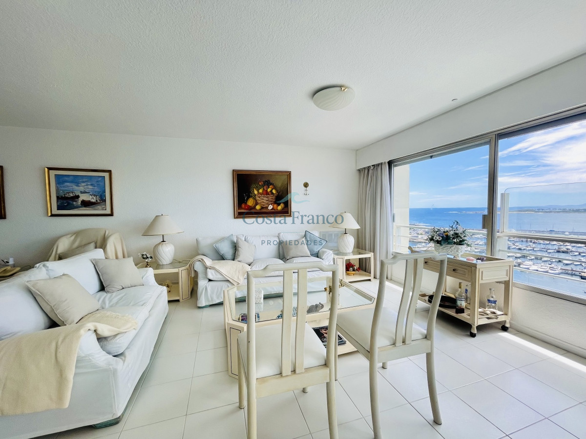 Living con grandes ventanales que proporcionan una iluminación natural espectacular y con una vista increíble vista al Puerto. Espacioso comedor mirando a los increíbles atardeceres de Punta del Este. Cocina completa, equipada con todos los electrodomésticos y terraza lavadero. Tres amplios dormitorios, el principal en suite con vestidor, dos baños completos. Más dependencia de servicio con baño.