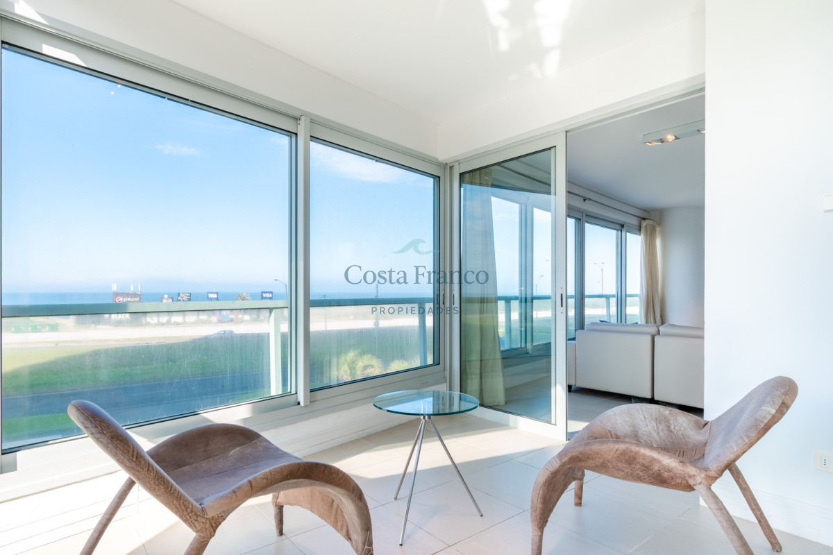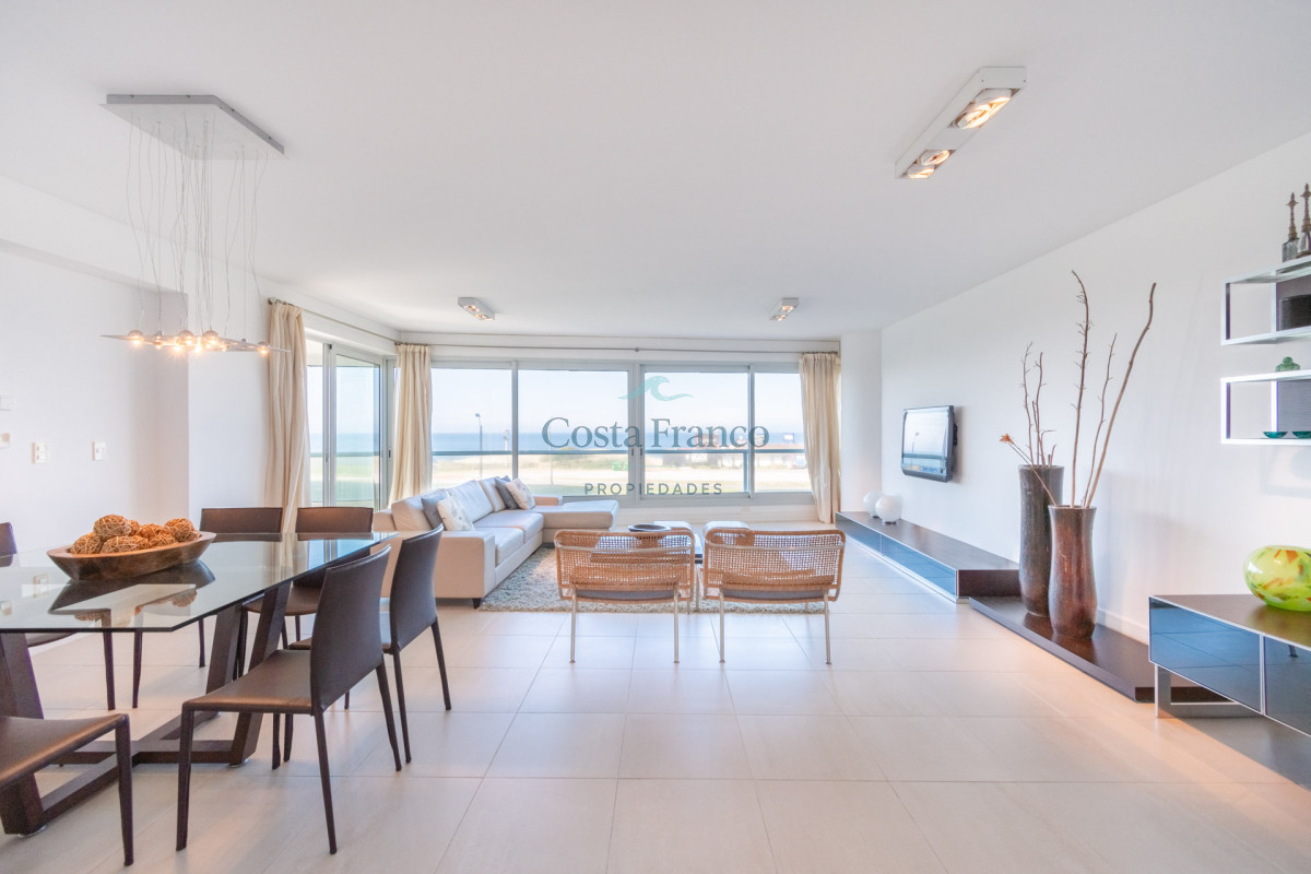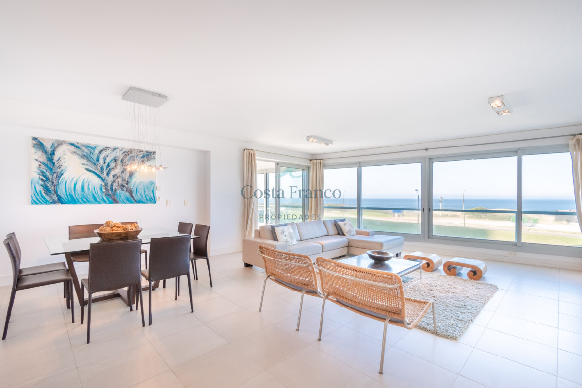 Ubicado sobre primera fila de Playa, se encuentra este departamento de amplio metraje y generosos ambientes con vista plena al Mar e Isla de Lobos.