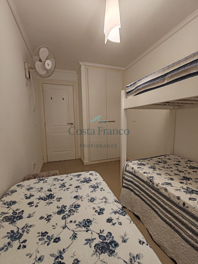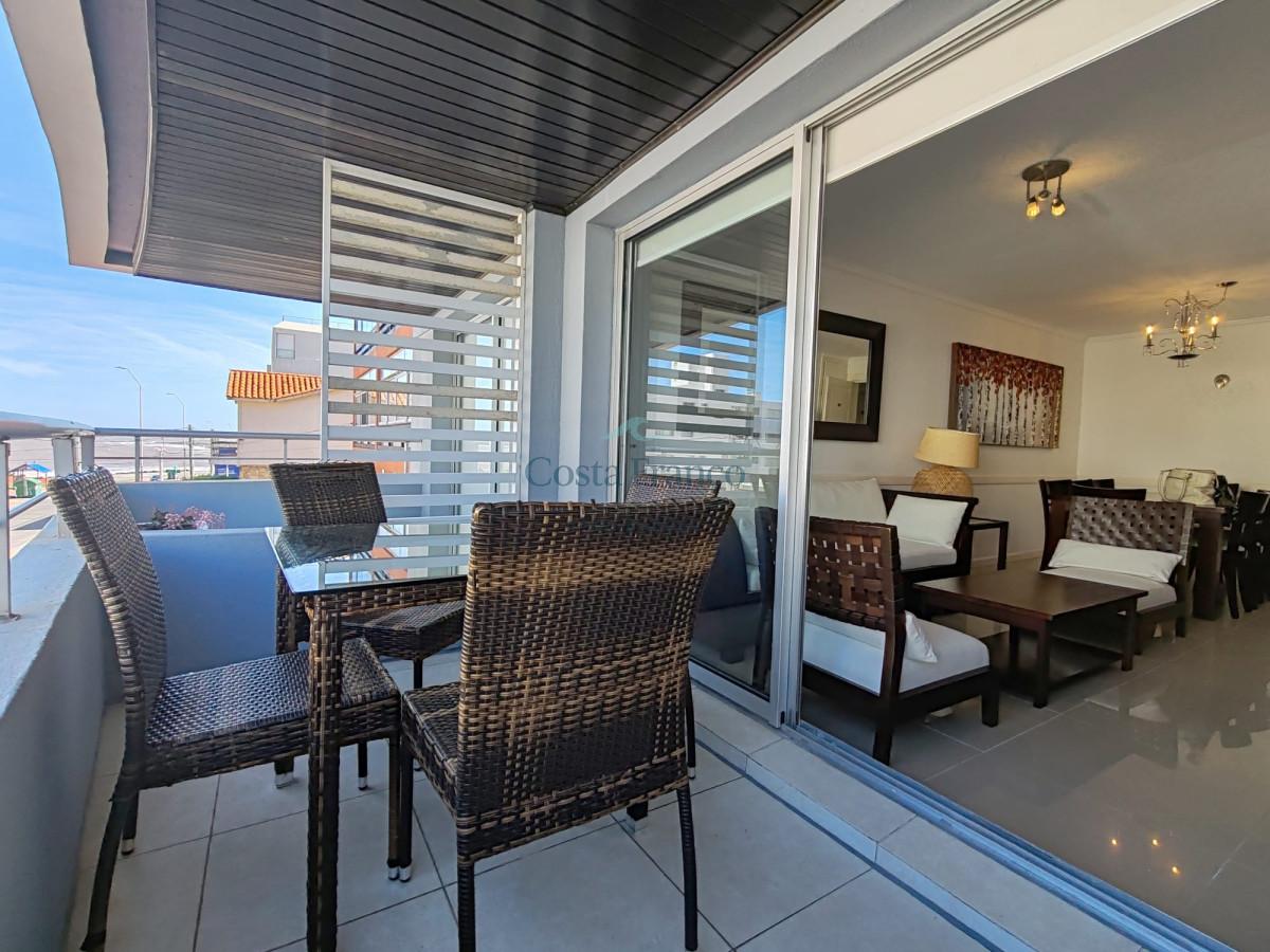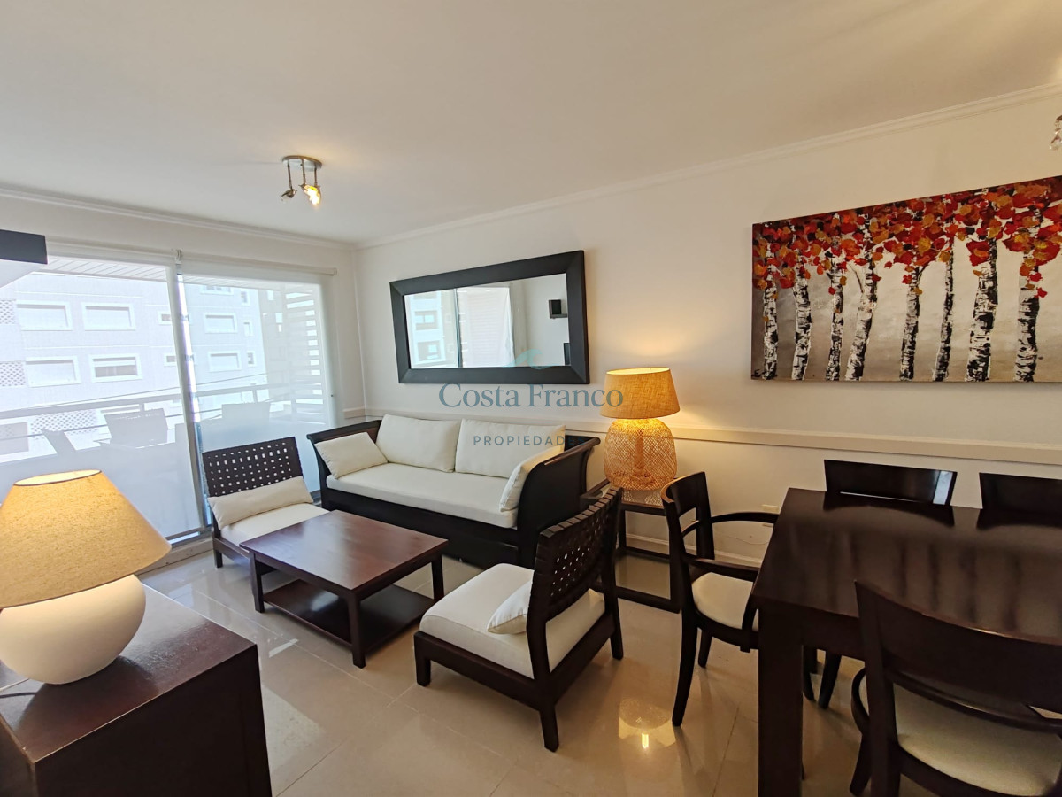 Departamento moderno en plena Península con vista al mar. Consta de 2 dormitorios y 2 baños ( 1 en suite), living comedor, cocina con terraza lavadero , terraza al frente y garage. Capacidad para 6 personas, servicio de mucama, piscina exterior, gym , barbacoa de uso común y recepción 24 horas.