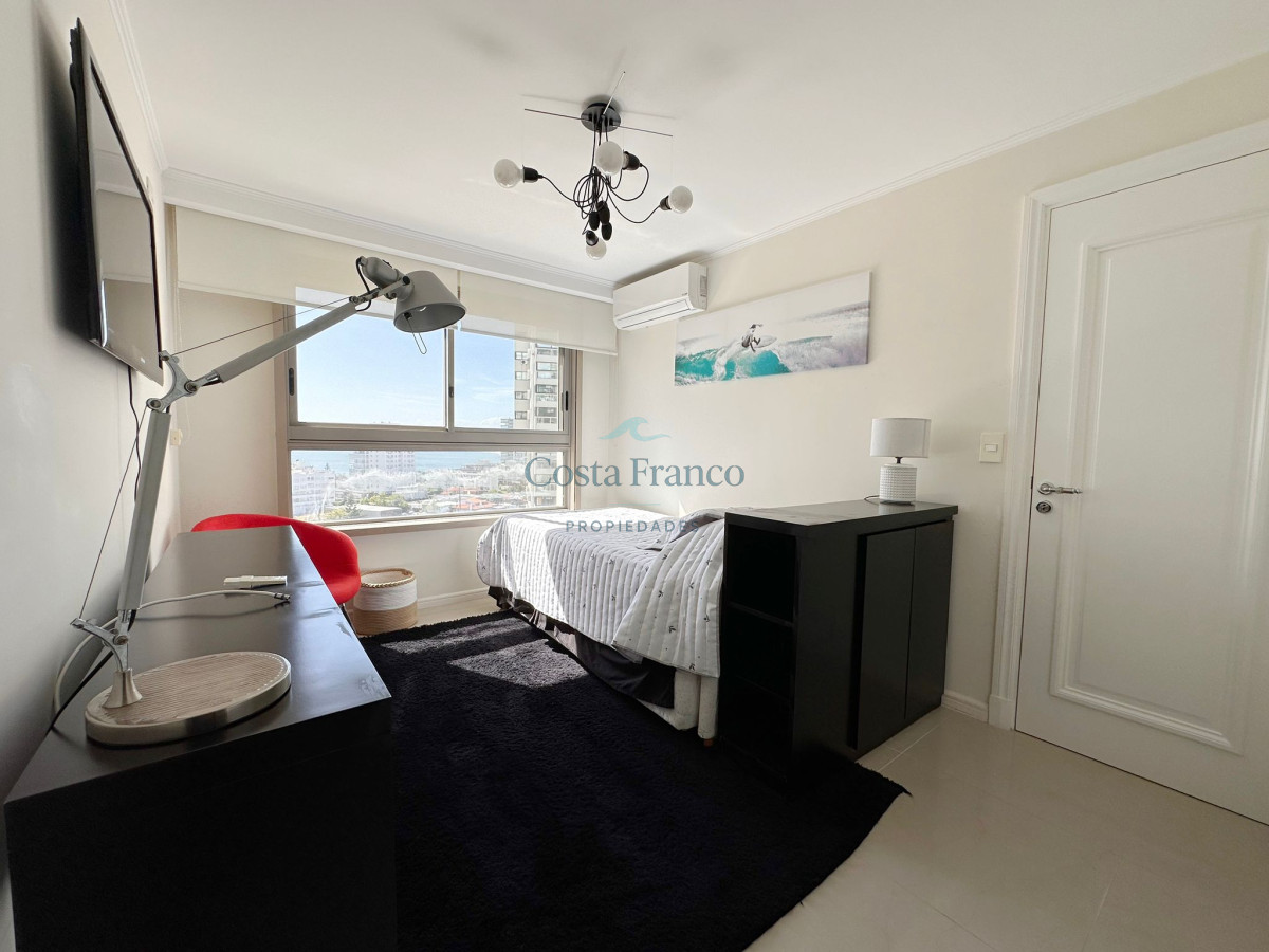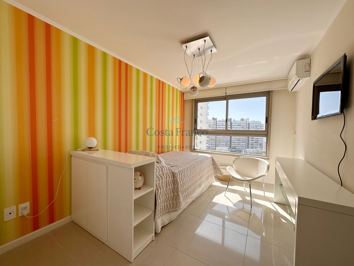 Amplio apartamento en Torre Imperiale, a metros de Playa Brava, cuenta con 3 dormitorios en suite, toilette, cocina, lavadero, living, comedor, garaje y cochera. Además la torre cuenta con amenities de primer nivel.