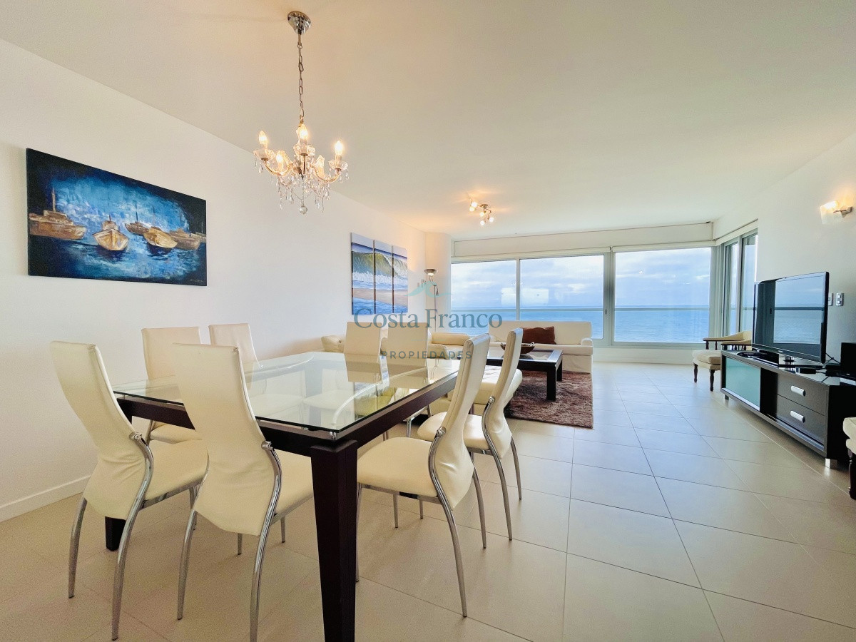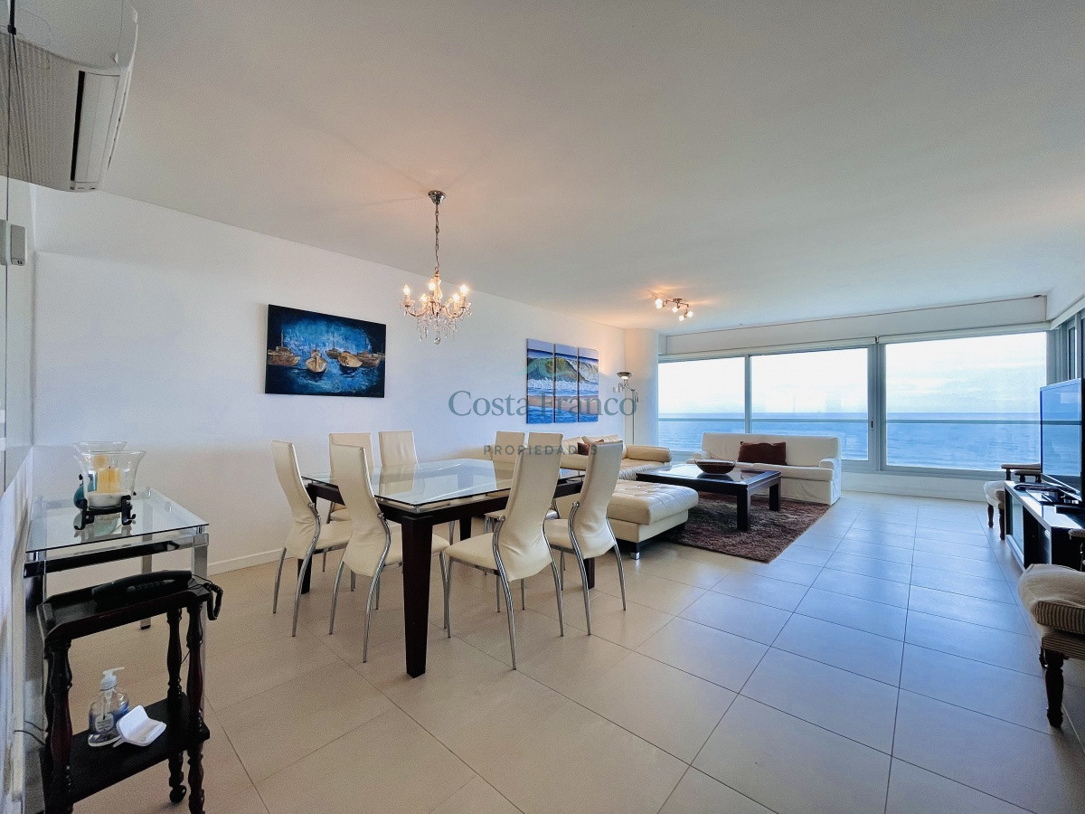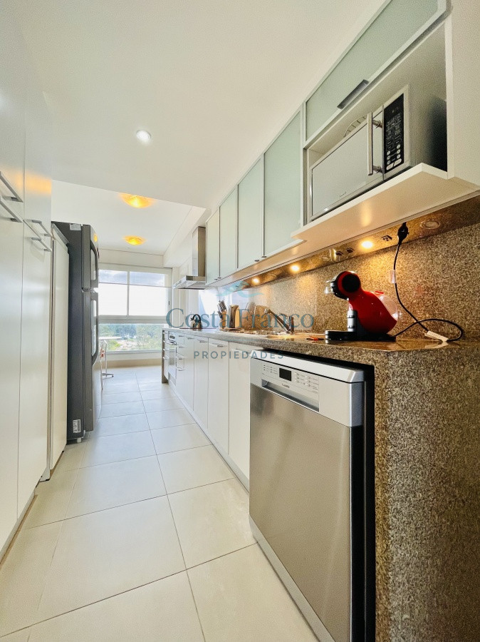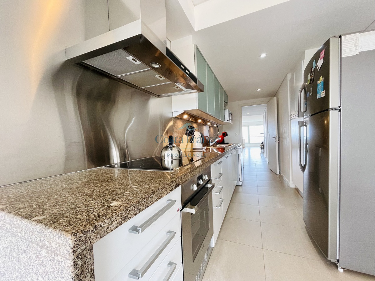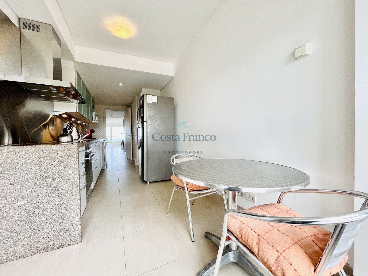 Cuenta con dos dormitorios en suite de generosas dimensiones, toilette, dependencia de servicio con baño. Amplio living comedor con vistas plenas al mar, terraza, lavadero, cocina con comedor diario.