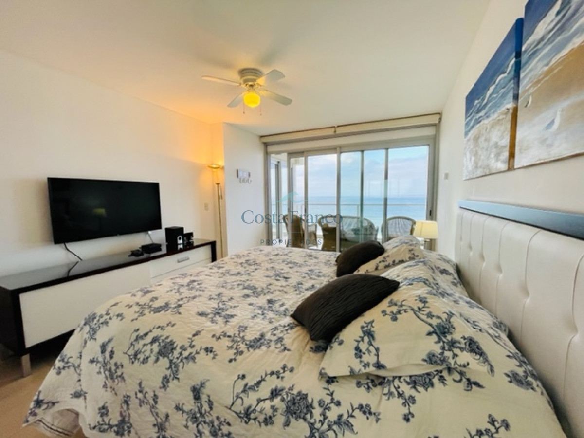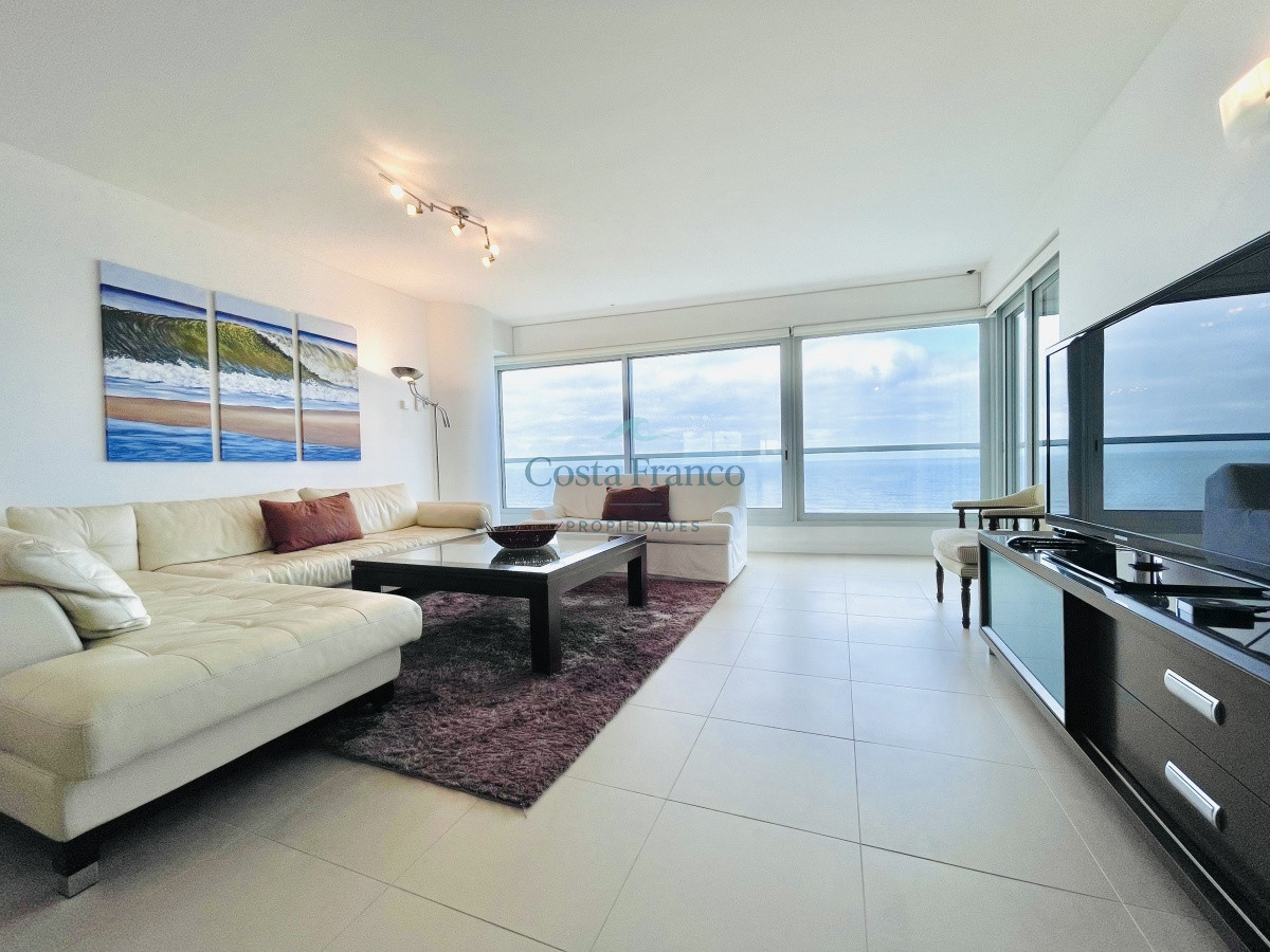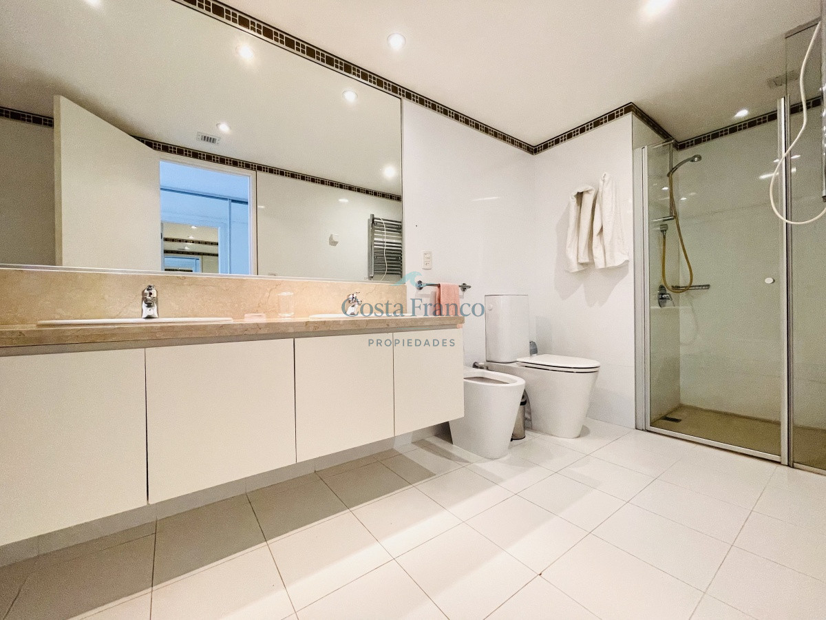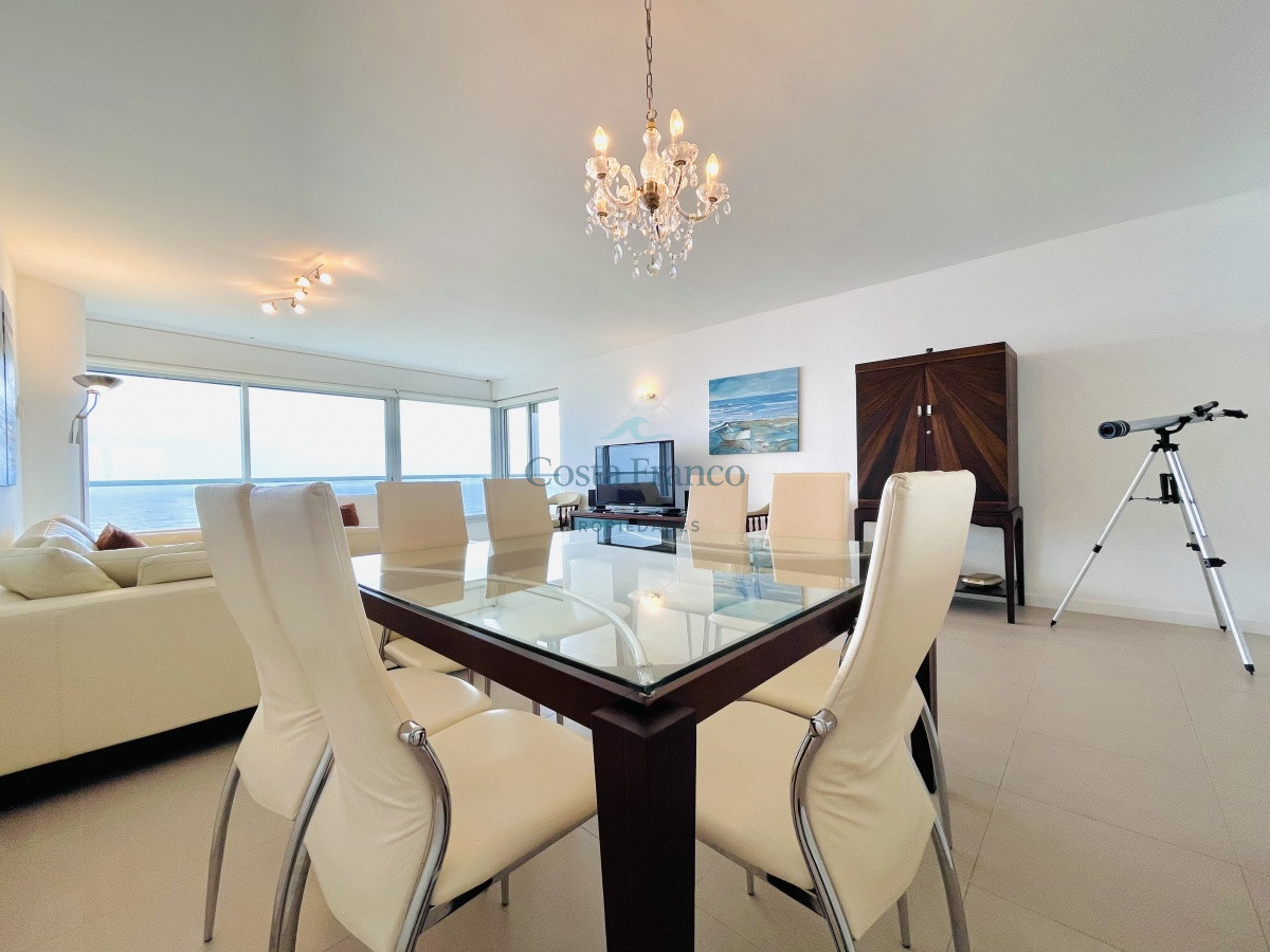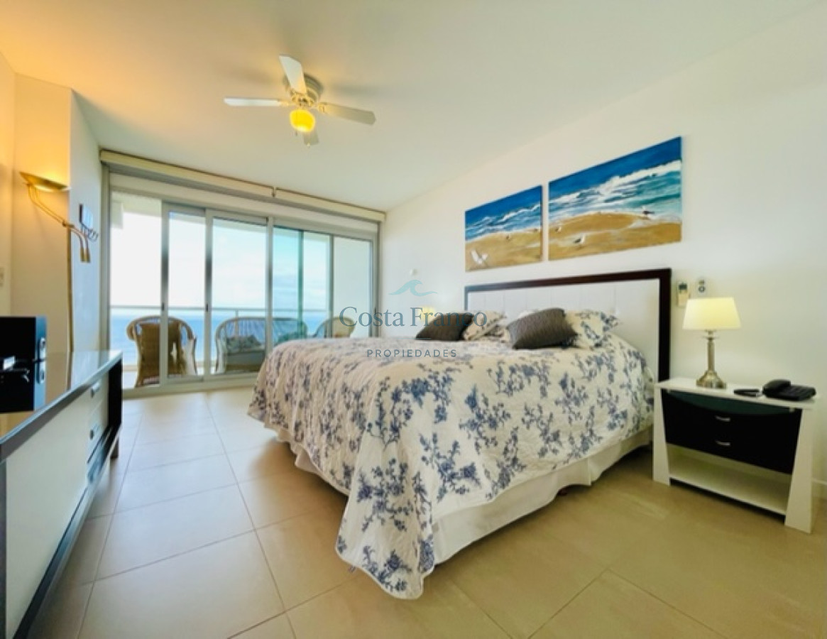 Cuenta con dos dormitorios en suite de generosas dimensiones, toilette, dependencia de servicio con baño. Amplio living comedor con vistas plenas al mar, terraza, lavadero, cocina con comedor diario.
