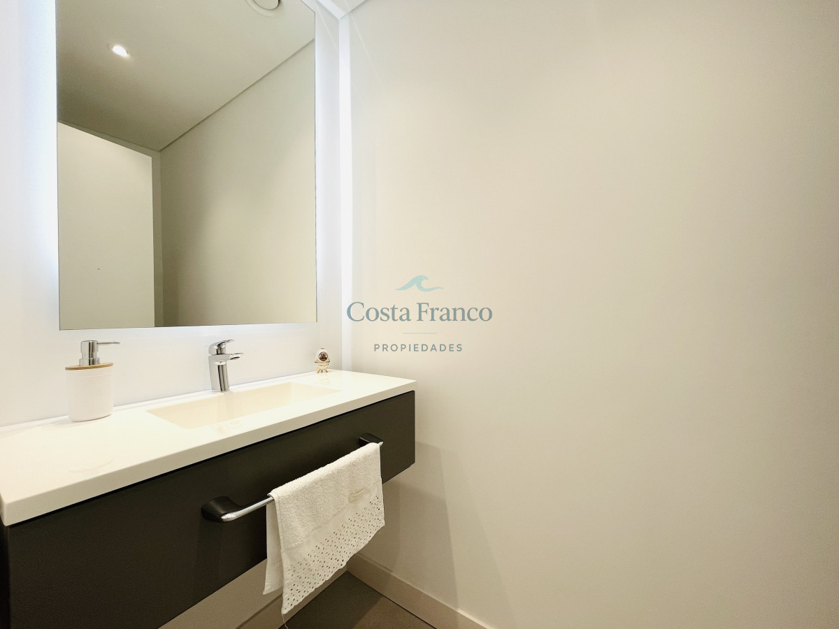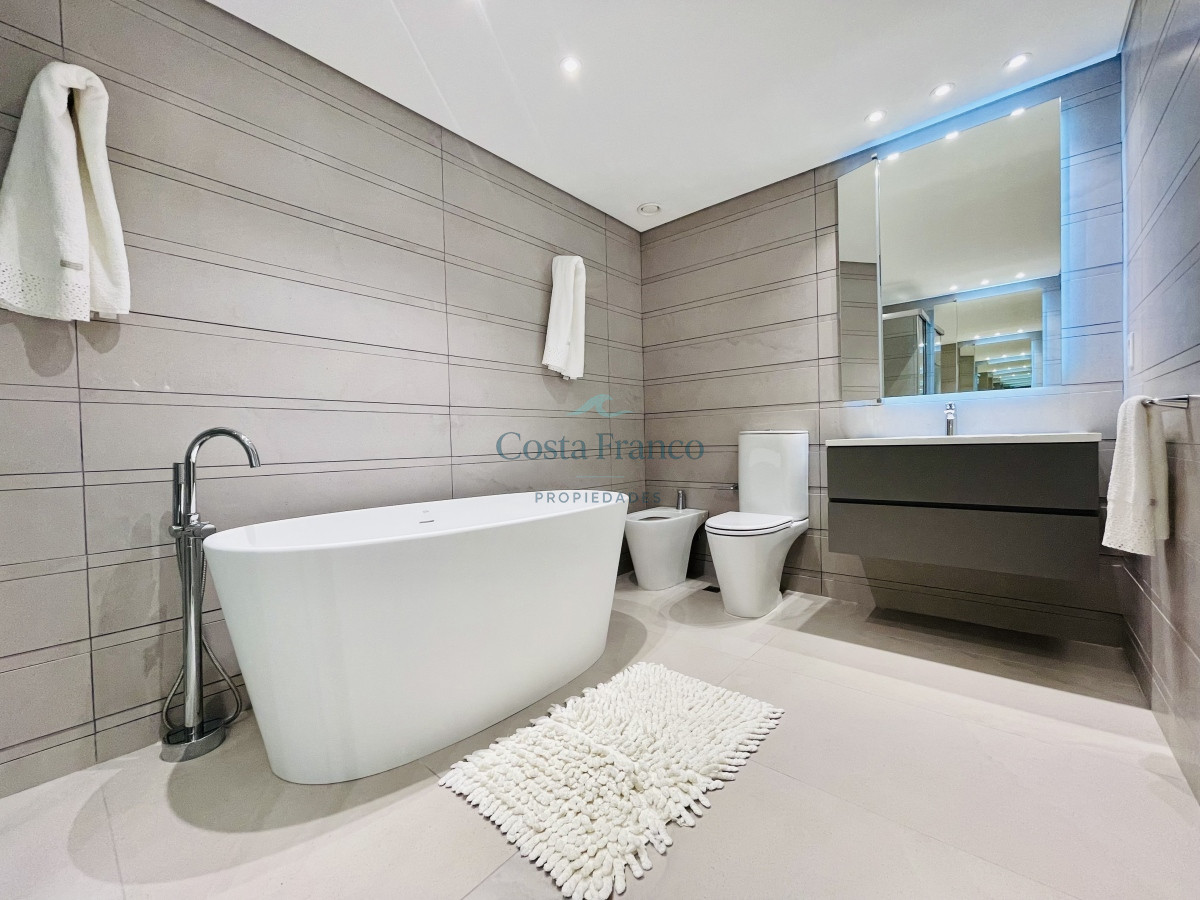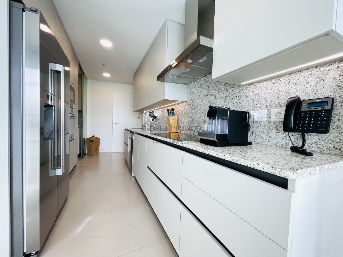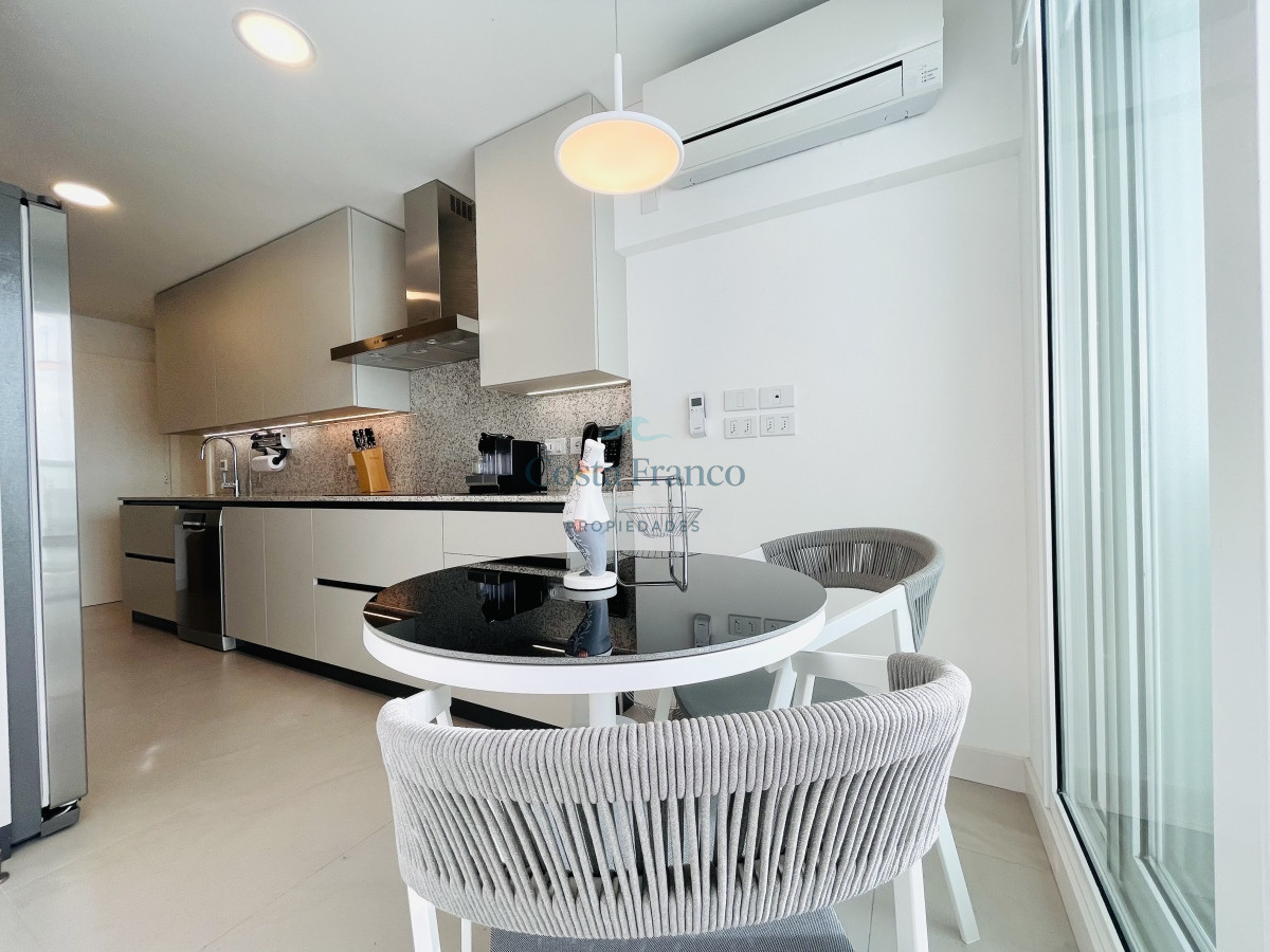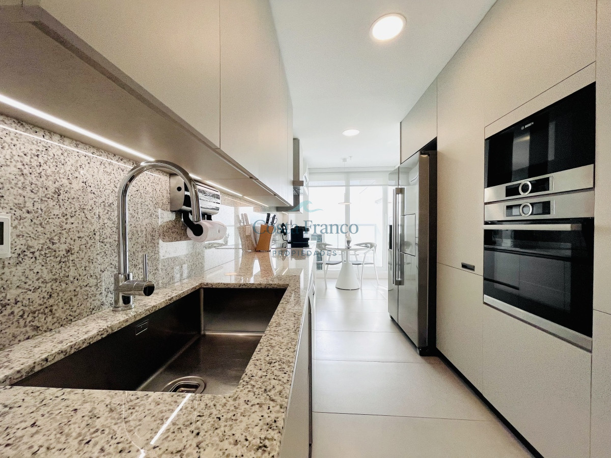 Dispone de tres cómodos dormitorios en suite, más toilette. Luminoso living comedor con vista directa al mar y salida a generosa terraza al frente. Gran cocina definida, muy bien equipada, con área de lavadero y balcón.