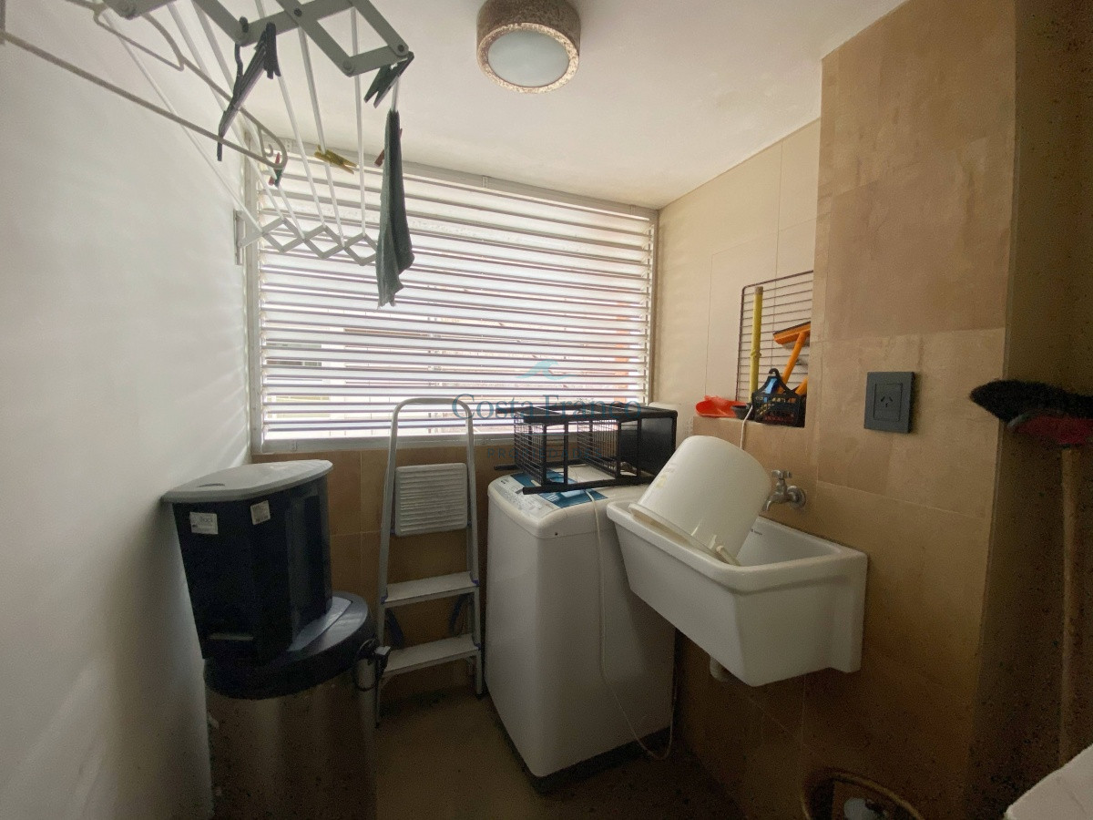 Edificio frente al mar, apartamento lateral, balcón, living-comedor, 2 dormitorios y medio, 2 baños, 1 suite, cocina definida con terraza con parrillero y garaje.