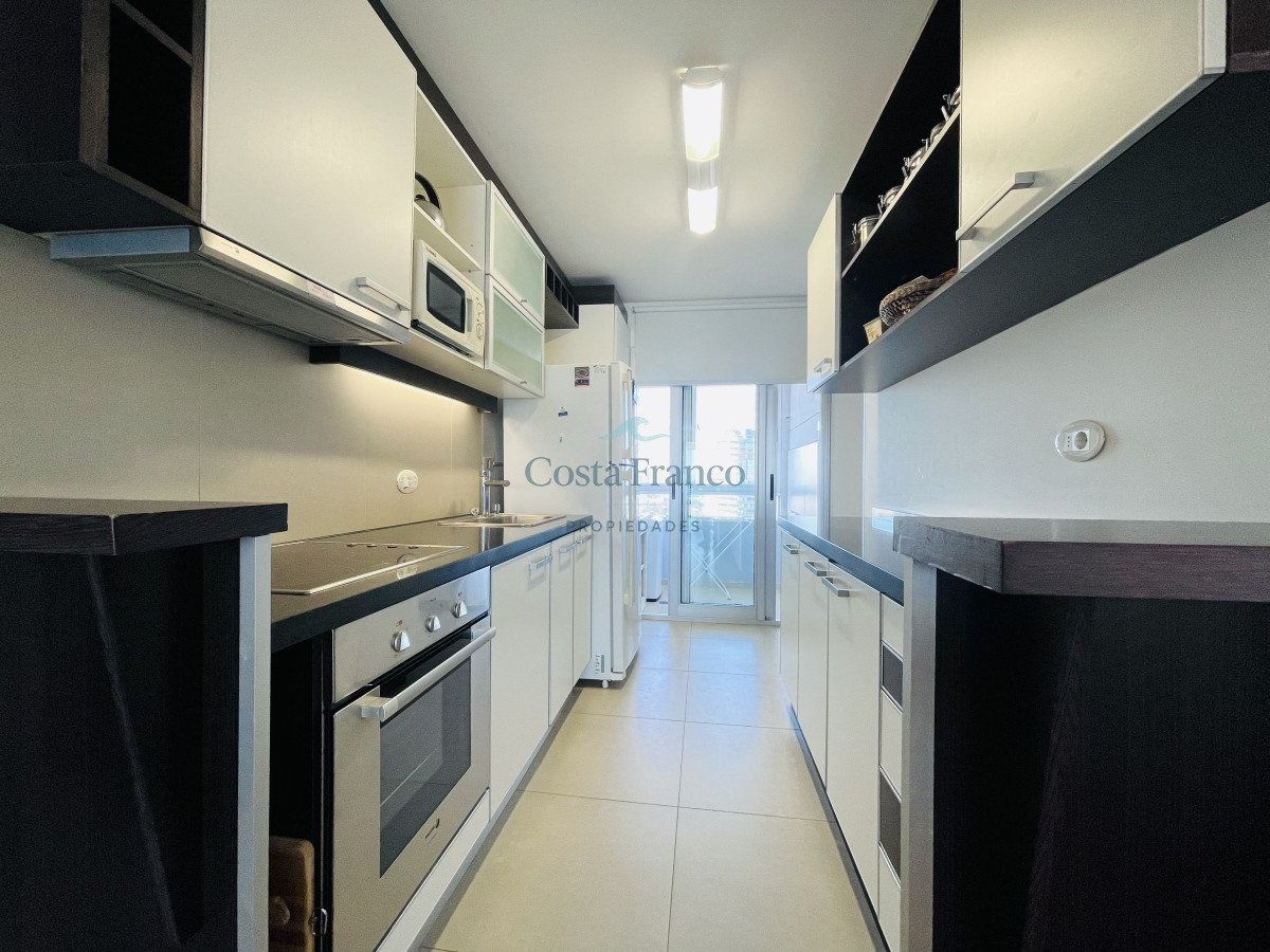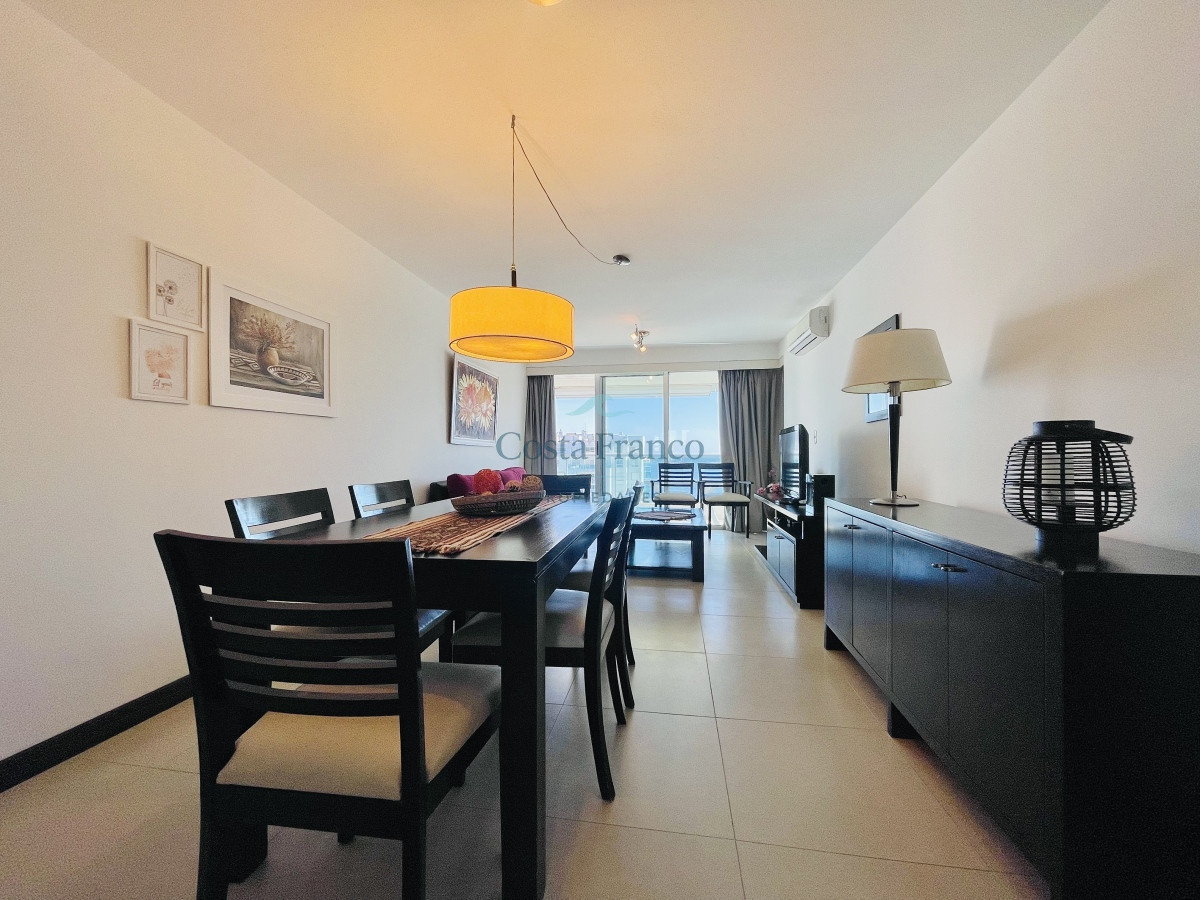 Piso alto con maravillosa vista, cuenta con dos dormitorios y dos baños, el principal orientado al frente en suite. Living comedor amplio con cocina semi integrada y salida hacia cómoda terraza.