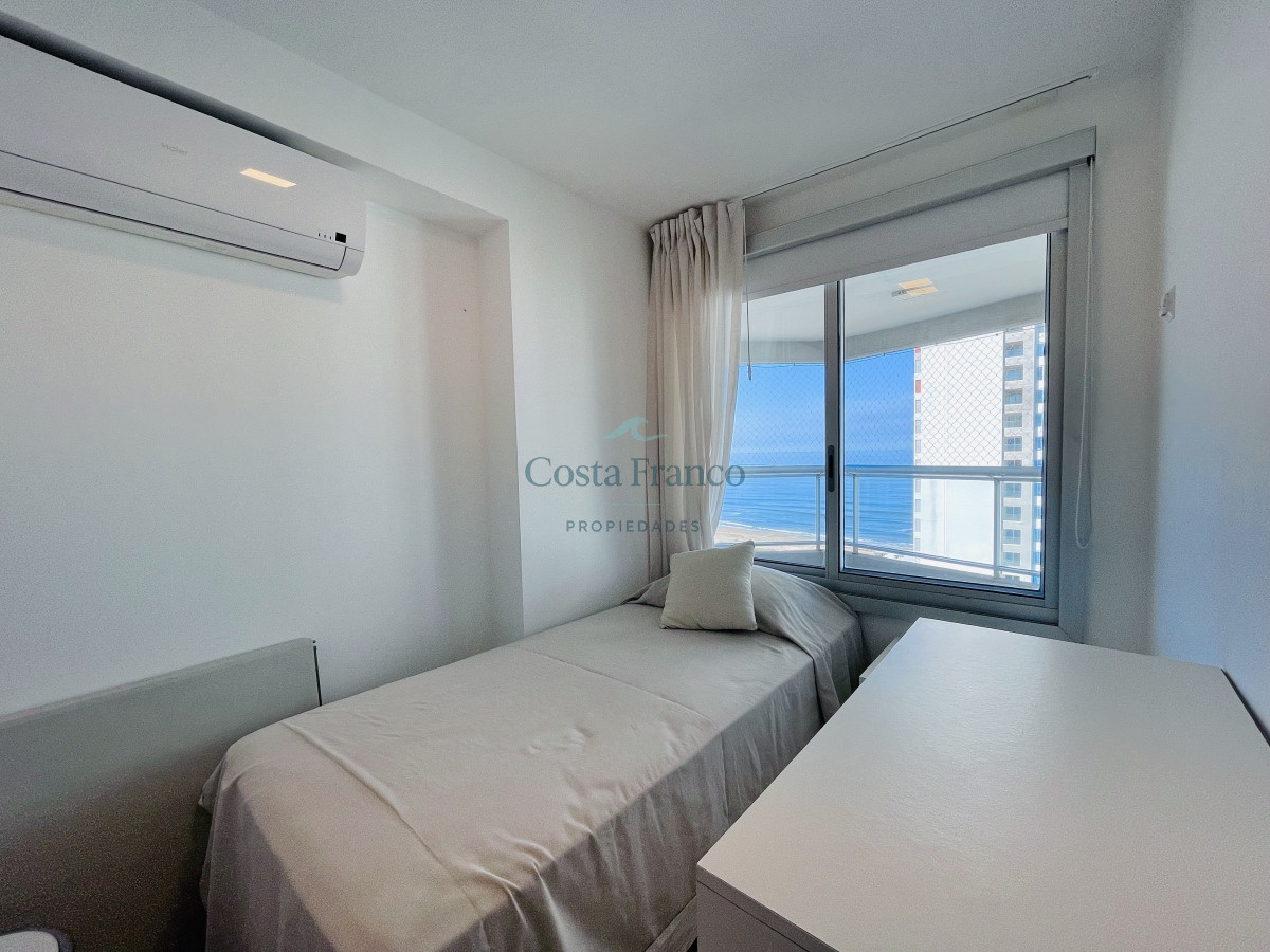 Muy buena planta distribuida en tres dormitorios que se funden en el horizonte marino, el dormitorio principal en suite con salida al balcón, dos baños completos, más dependencia de servicio con baño y toilette. Amplio living comedor con grandes ventanales que proporcionan una iluminación natural espectacular mirando el mar hacia La Barra de Punta del Este. Cocina definida con doble circulación y vista al mar. Espacioso balcón con parrillero propio.
