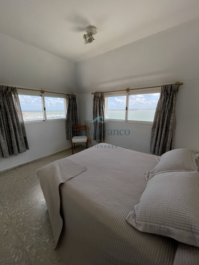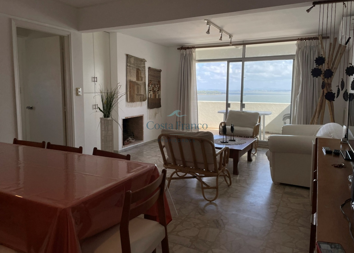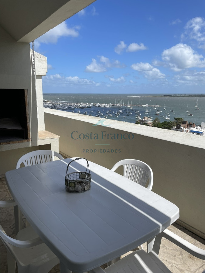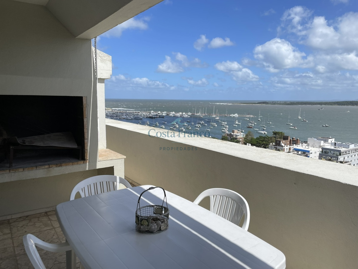 Sobre la calle más exclusiva de la Península se ubica este edificio. Muy buscado por su excelente mantenimiento y sus gastos acorde. Muy cómoda planta, con parrillero propio y hogar a leña. Su gran atractivo es la maravillosa vista a toda la bahía. Cochera subterránea, Recepción reciclada, decorada acorde con la zona en la que se ubica.