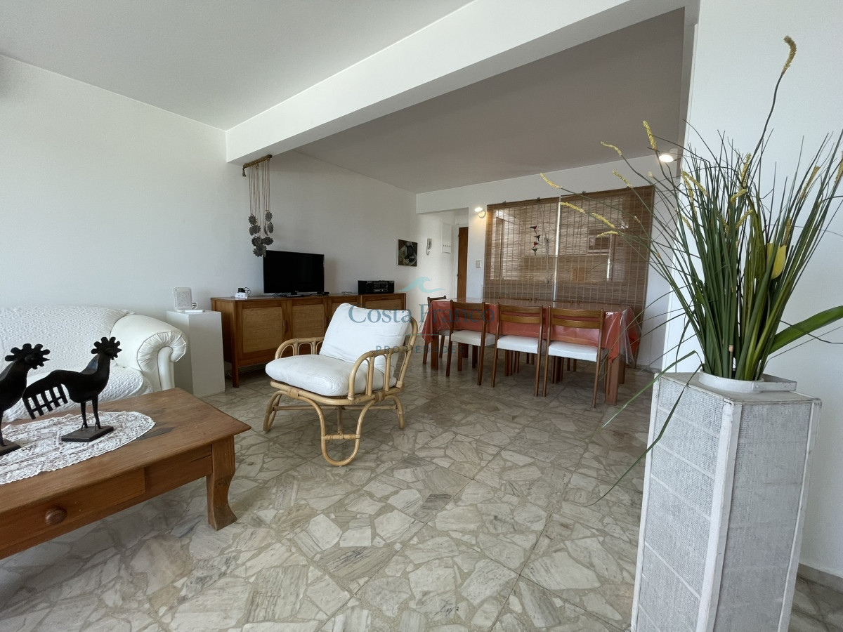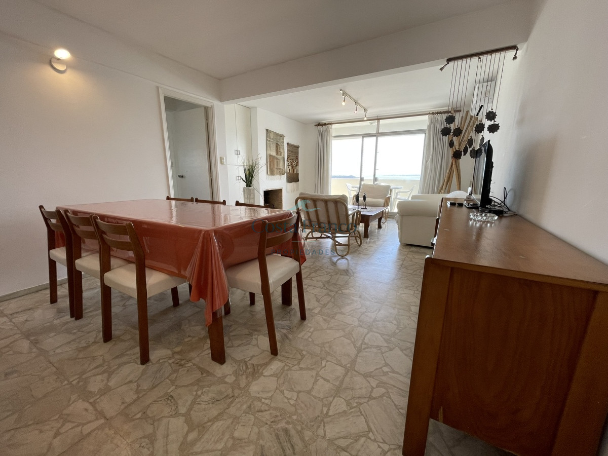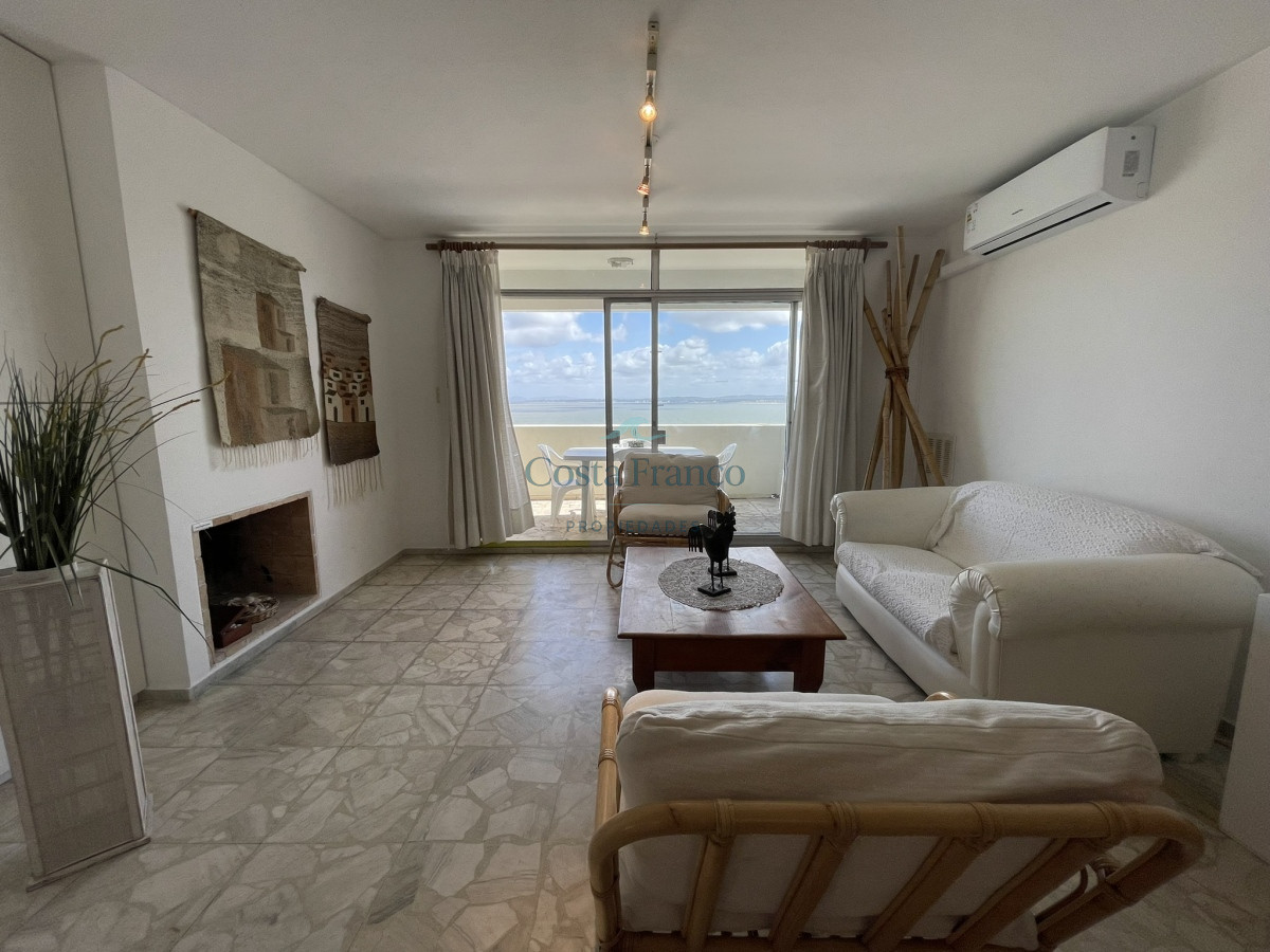 Sobre la calle más exclusiva de la Península se ubica este edificio. Muy buscado por su excelente mantenimiento y sus gastos acorde. Muy cómoda planta, con parrillero propio y hogar a leña. Su gran atractivo es la maravillosa vista a toda la bahía. Cochera subterránea, Recepción reciclada, decorada acorde con la zona en la que se ubica.