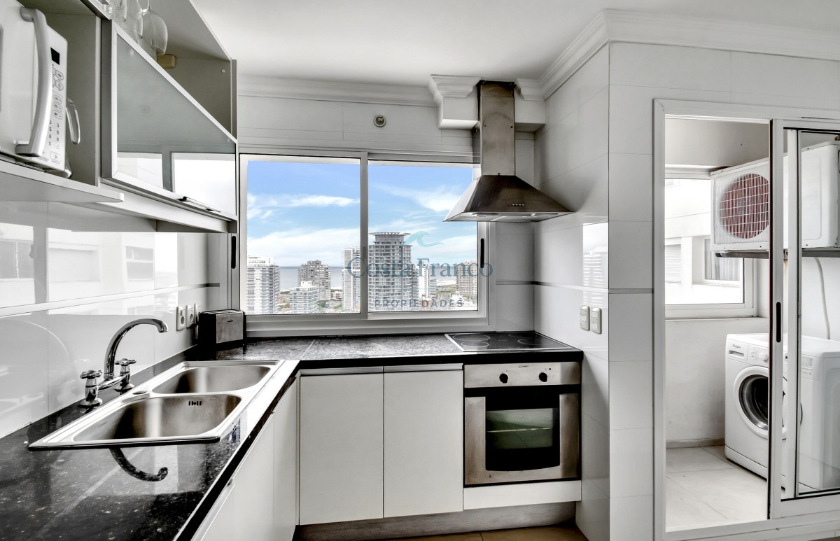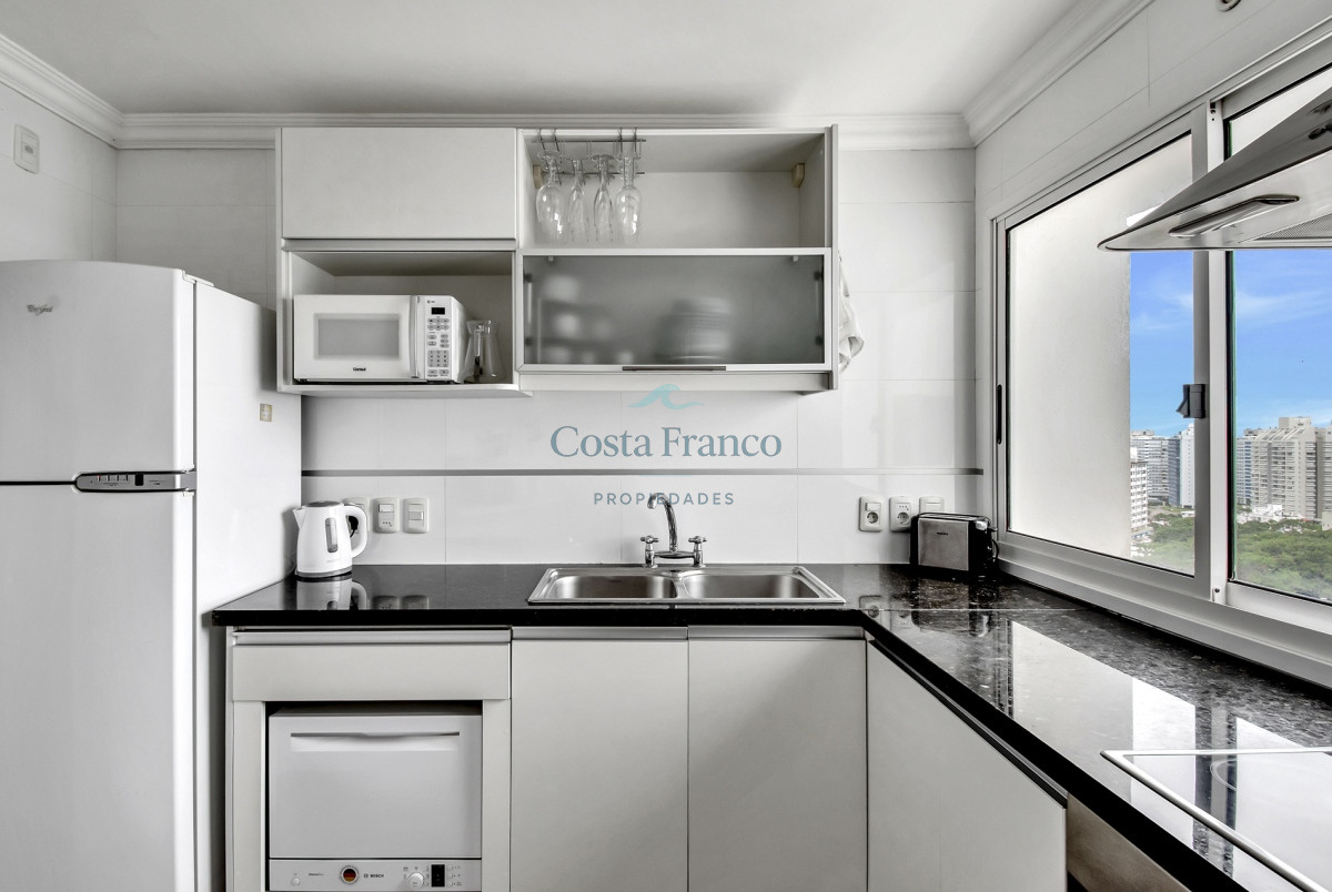 La cocina, bien equipada, cuenta con electrodomésticos esenciales como anafe, microondas, lavarropas, lavavajillas, tostadora, heladera con freezer y horno. Además, hay un lavadero para mayor comodidad. El área de estar se compone de un living y un living comedor, creando un ambiente agradable y funcional para disfrutar de momentos de relajación y comidas compartidas.