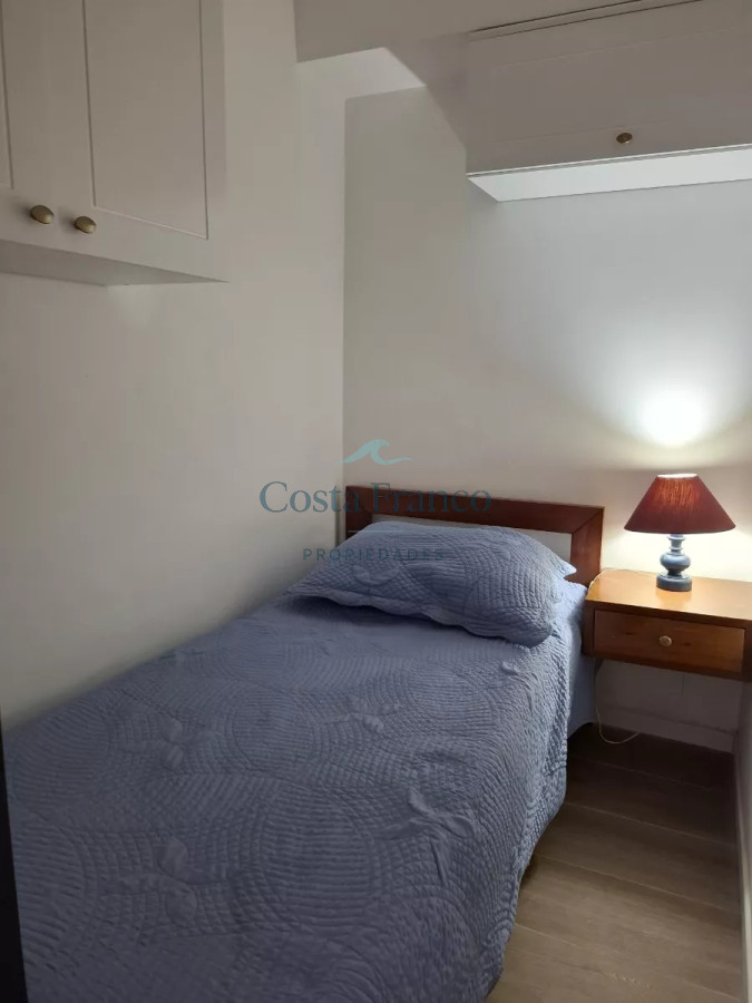 Consta de 2 dormitorios y medio, uno con vista al mar, baño en suite y televisor. Todos los dormitorios tienen placares. Segundo baño completo.