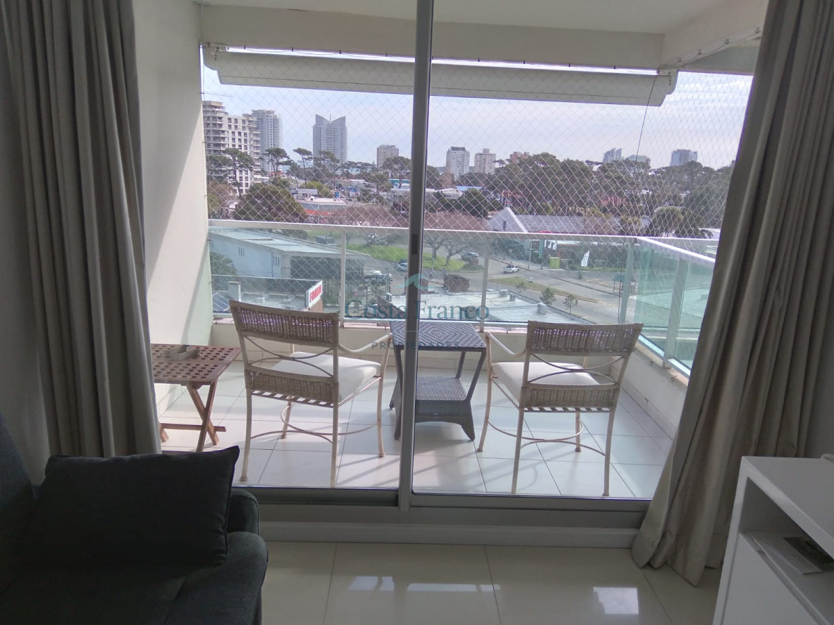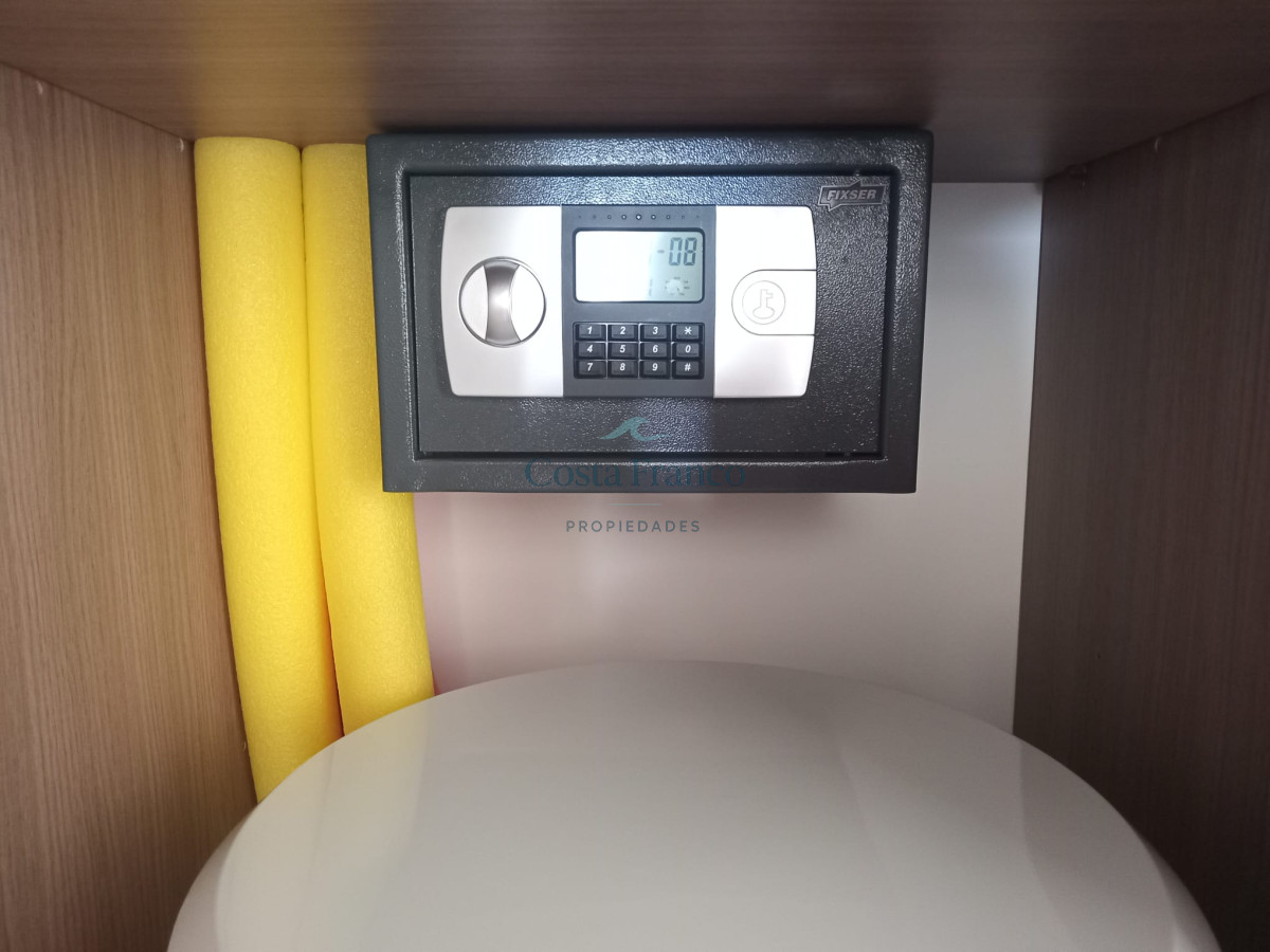 El apartamento cuenta con Livign comedor con un sillón cama con un lindo balcón con vista a la mansa, cocina amplia, baño y un dormitorio con cofre de seguridad.