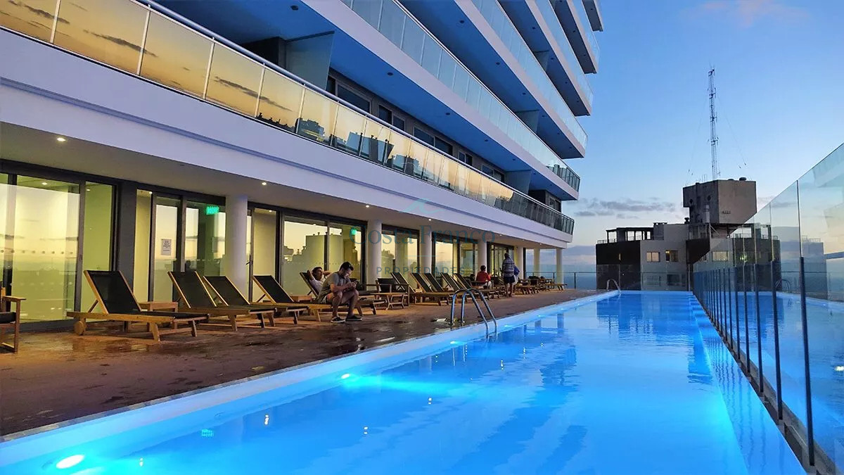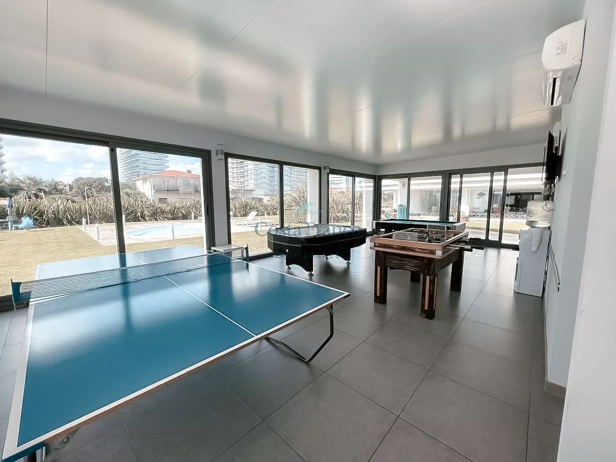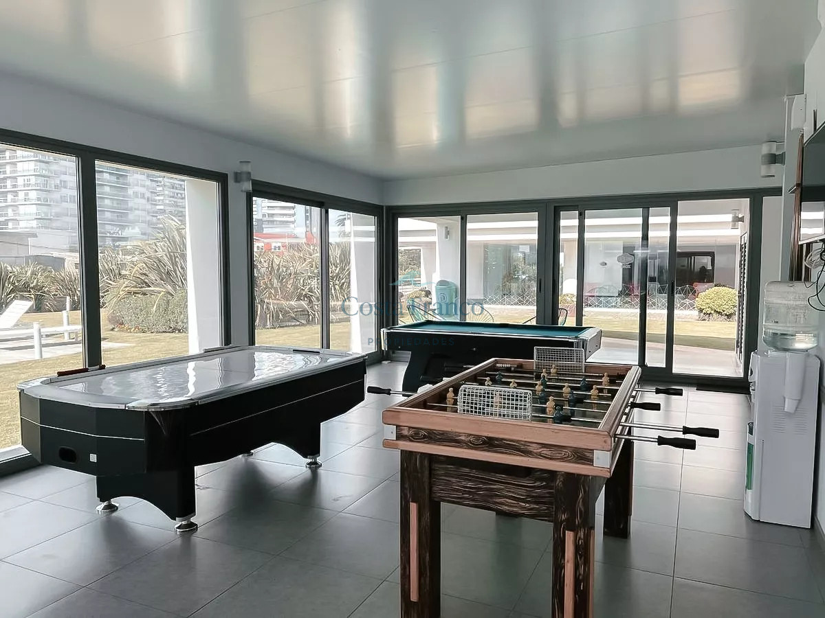 Apartamento con muy buenos servicios, a 100 mts del mar con servicios de playa, mucama, piscinas exterior e interior, gym, saunas, sala de juegos y más.