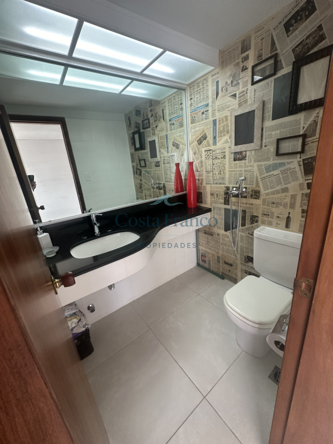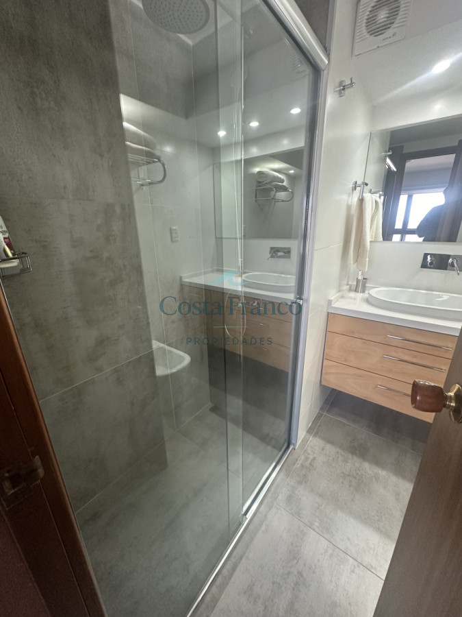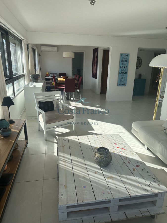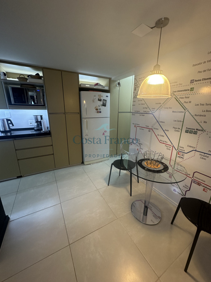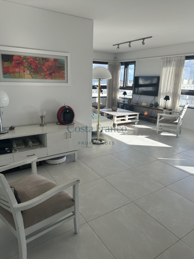 Cuenta con living comedor amplio con vista a toda la península y al mar, cocina amplia con lavajilla, Lavarropa, Secarropa, todo los electrodomésticos, un toilette, 3 dormitorios en suite, cochera fija para un vehículo en subsuelo.