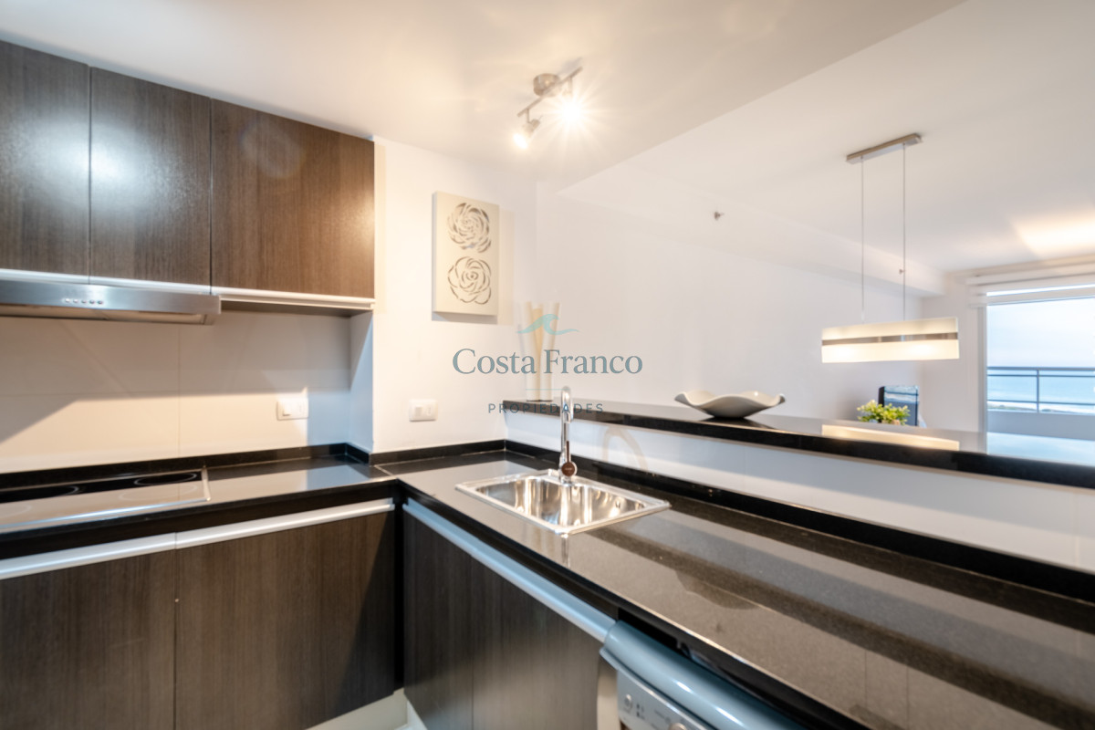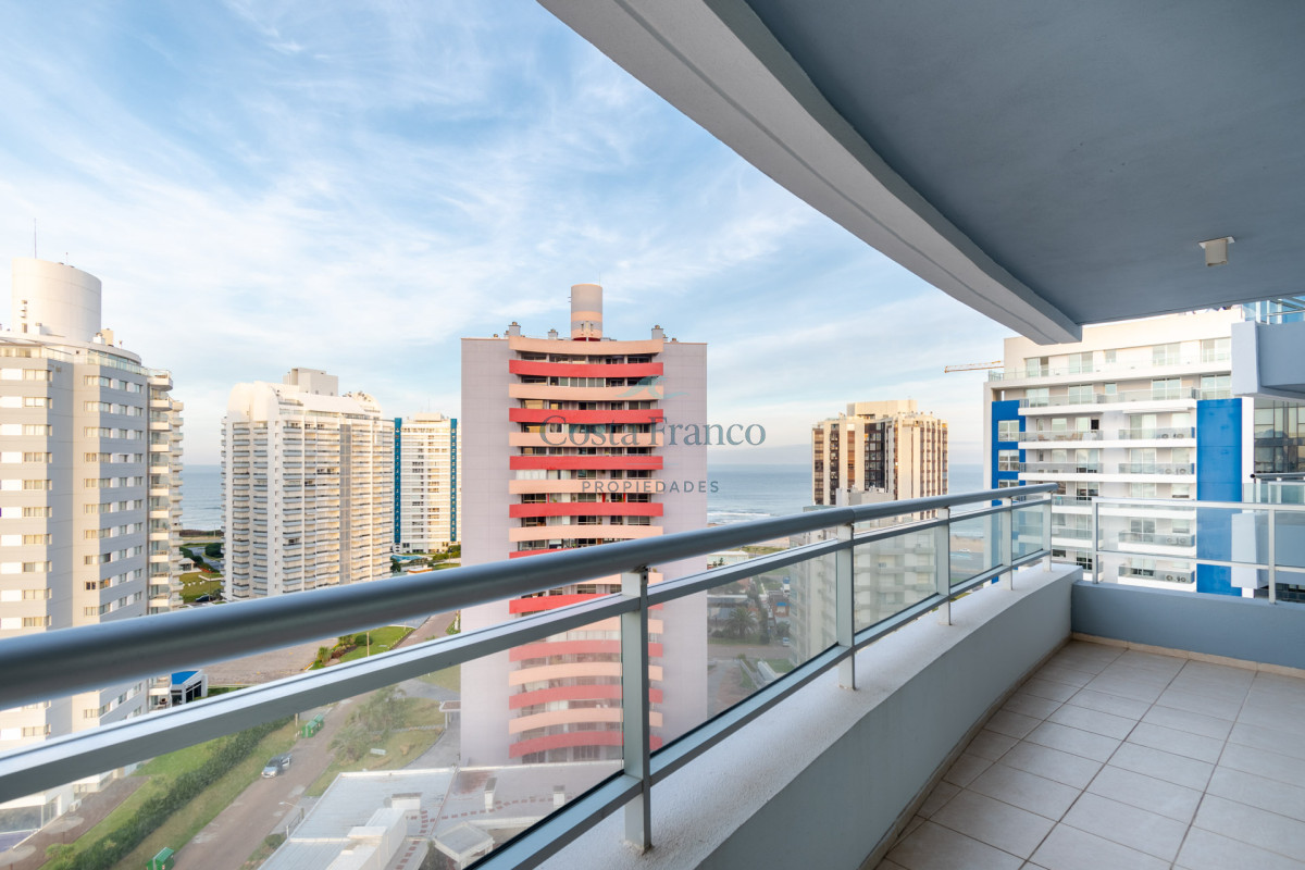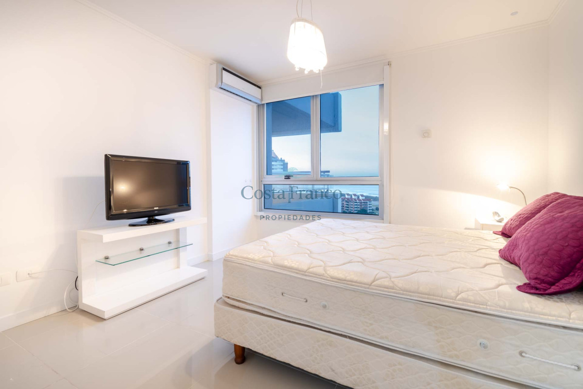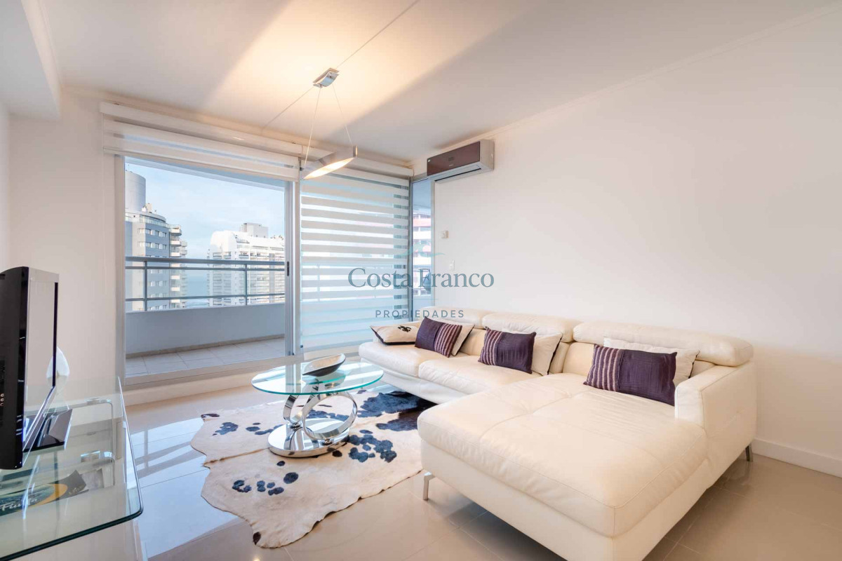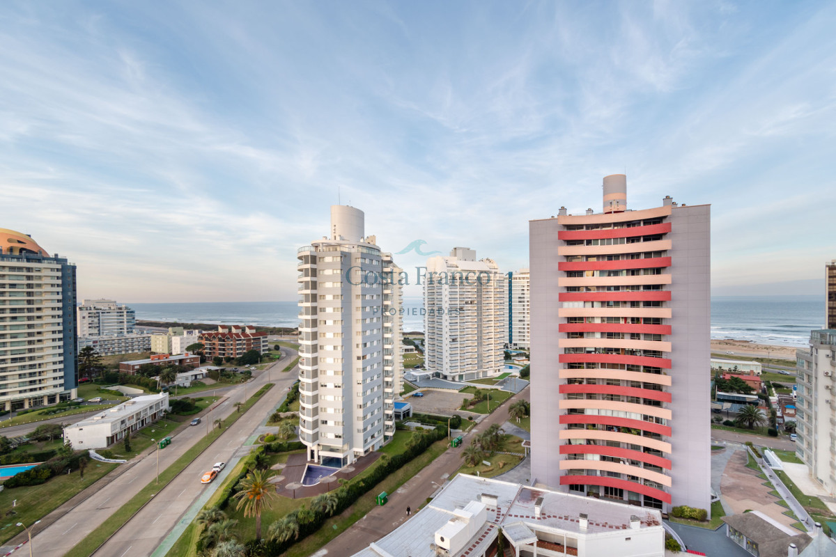 Excelente planta, piso alto con muy buena vista al mar. Dispone de dos dormitorios y medios, el principal en suite con vestidor, dos baños completos. Cuenta con buenos placares y espacios amplios y luminosos. Living comedor muy bien equipado con balcón mirando hacia el mar. Espaciosa cocina con barra. Garage.