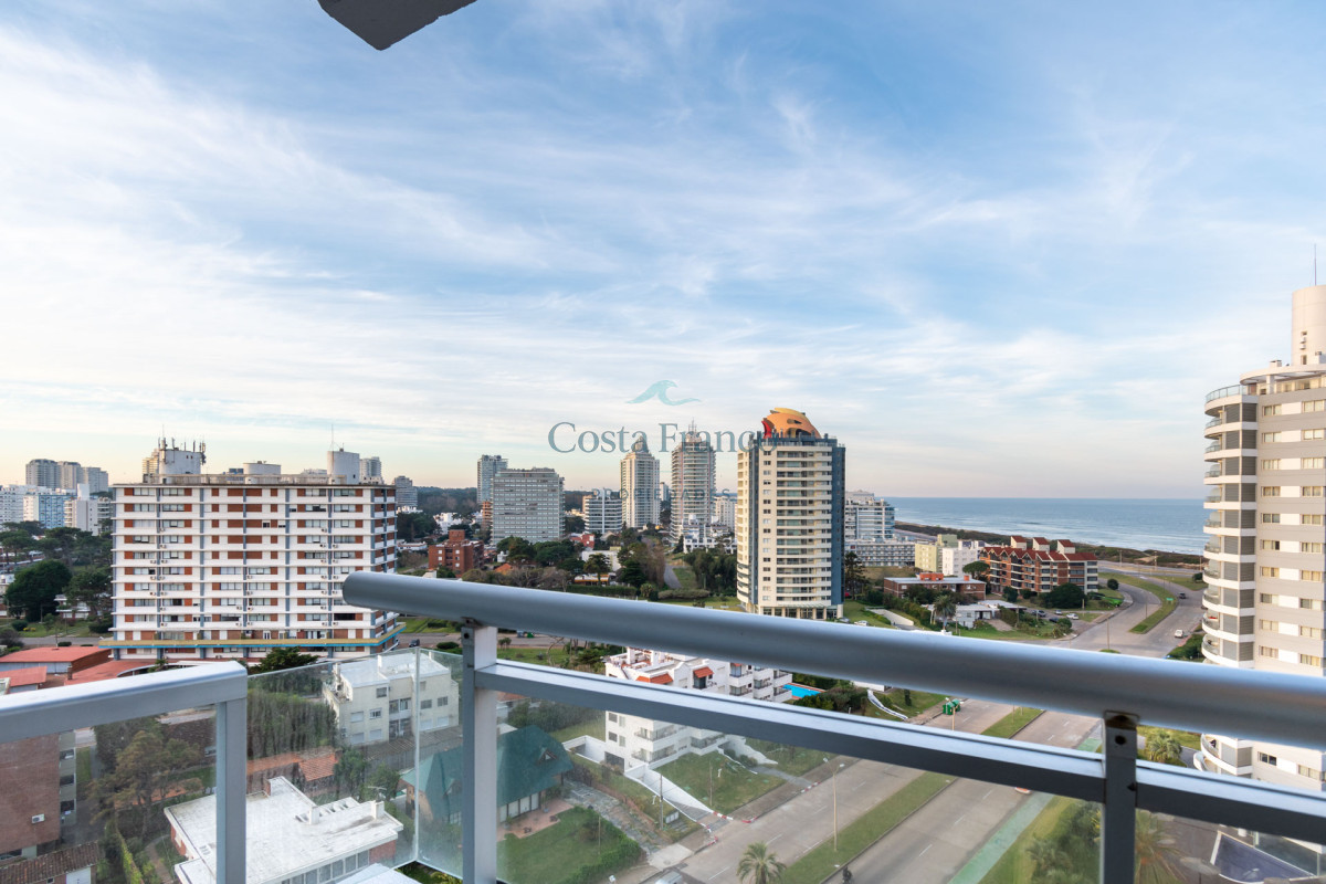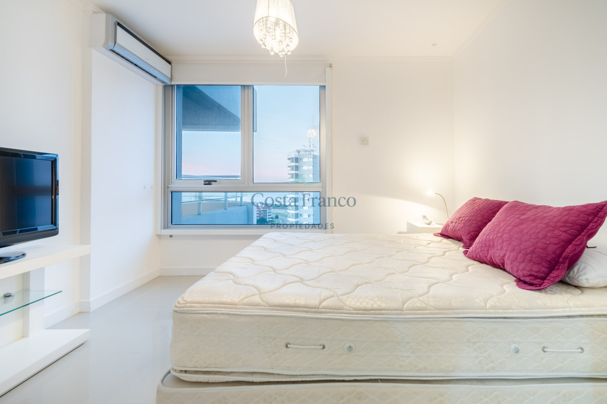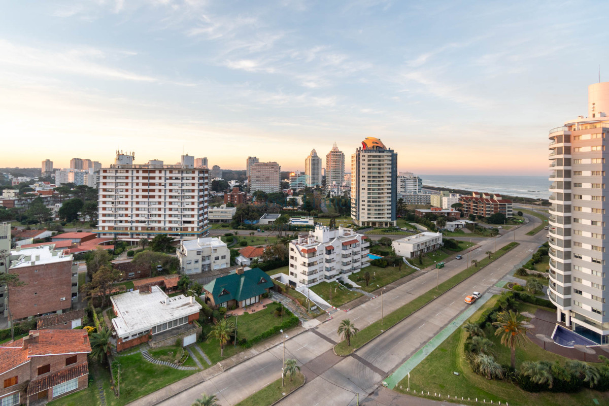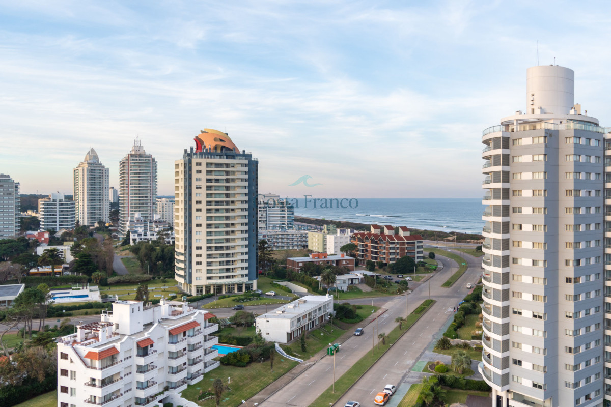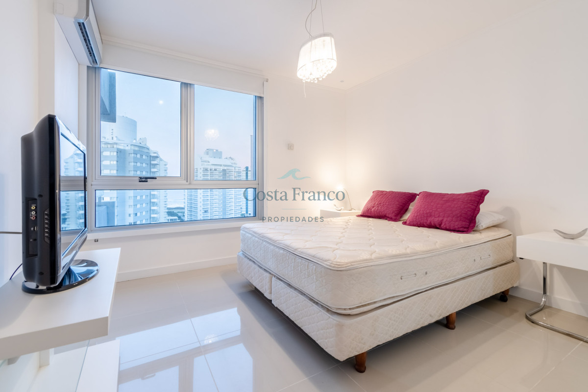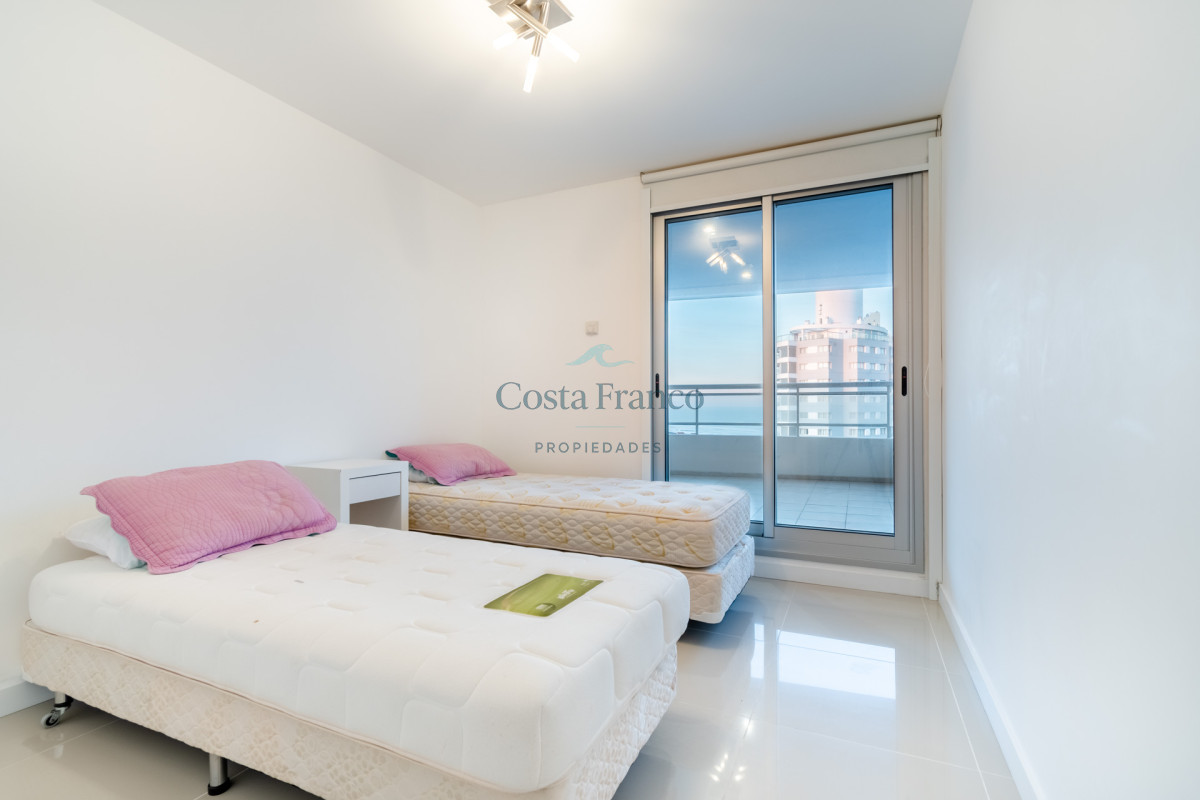 Excelente planta, piso alto con muy buena vista al mar. Dispone de dos dormitorios y medios, el principal en suite con vestidor, dos baños completos. Cuenta con buenos placares y espacios amplios y luminosos. Living comedor muy bien equipado con balcón mirando hacia el mar. Espaciosa cocina con barra. Garage.