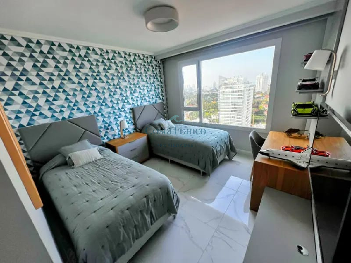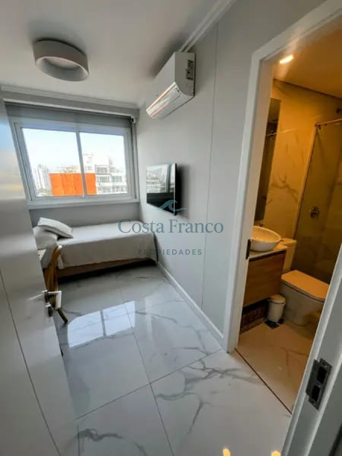 Tiene 4 dormitorios en suite mas baño social, balcón muy cómodo con toldos eléctricos y cerramiento de PVC transparente del lado este, cocina definida con terraza-lavadero.