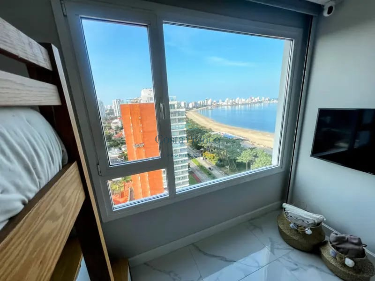 Espectacular apartamento esquinero en Torre Paramount, Parada 8 de Playa Mansa en piso 15 con orientacion sur-este. Todos los ambientes tienen vista al mar.