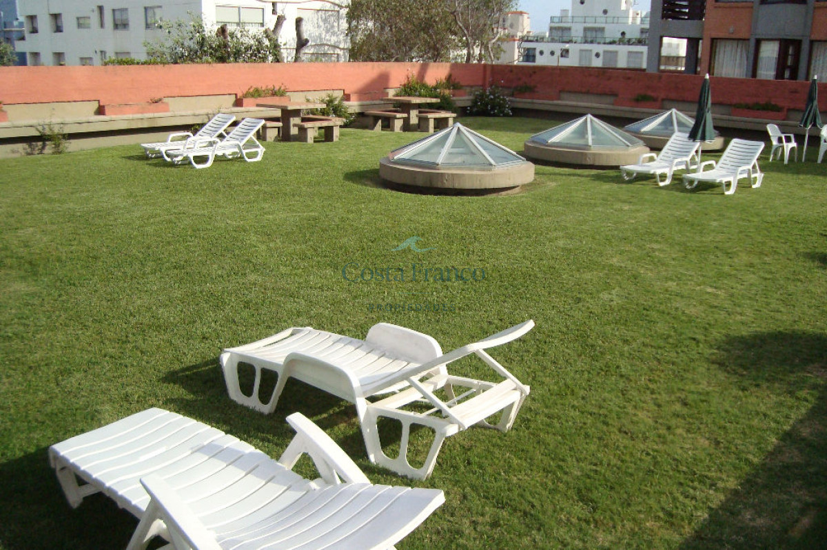 El edificio tiene piscina climatizada abierta, servicio de mucamas diario y recepción las 24 horas.
