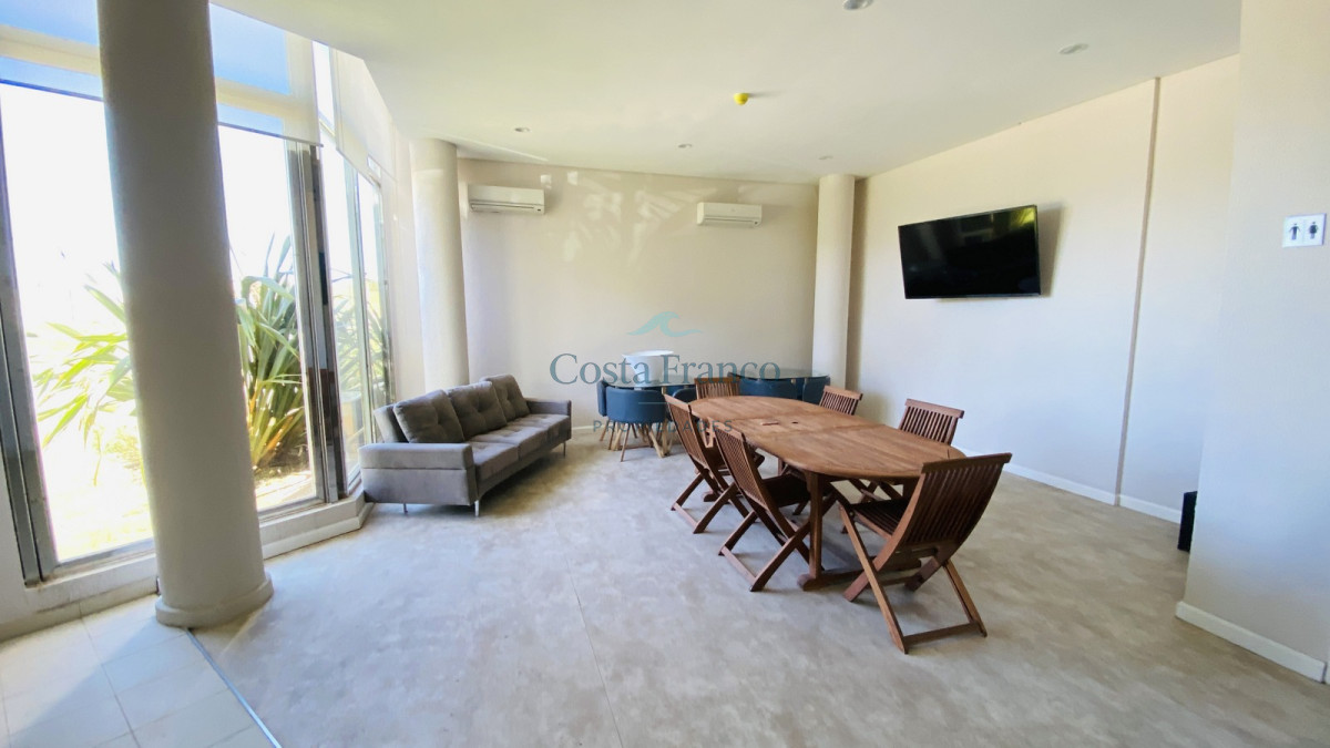 Edificio nuevo con servicios, ubicación a pasos de la playa, cuenta con piscina externa y interna climatizada, gimnasio, barbacoa, sala de juegos para chicos, cocheras cubiertas y bauleras.