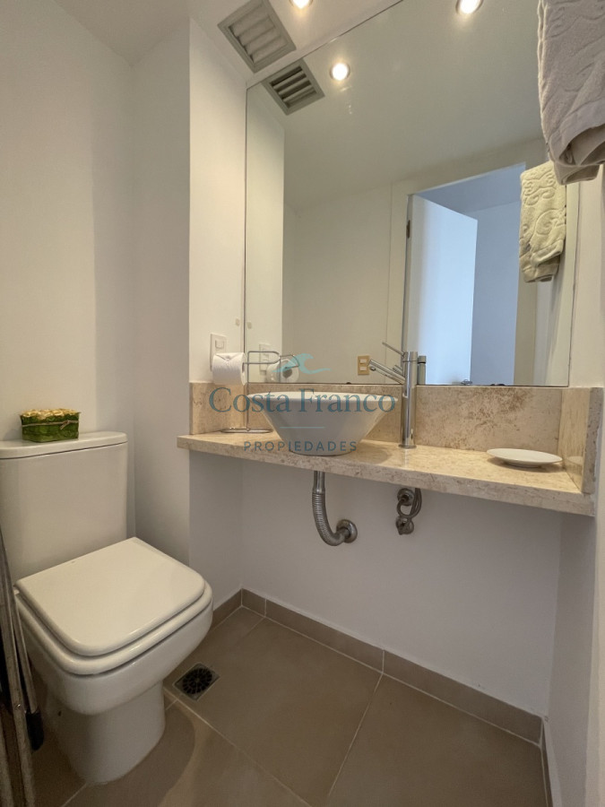 Cuenta con dos dormitorios con dos baños en suite más toilette. Cómodo living comedor, cocina definida con lavarropas, lavavajillas y freezer.