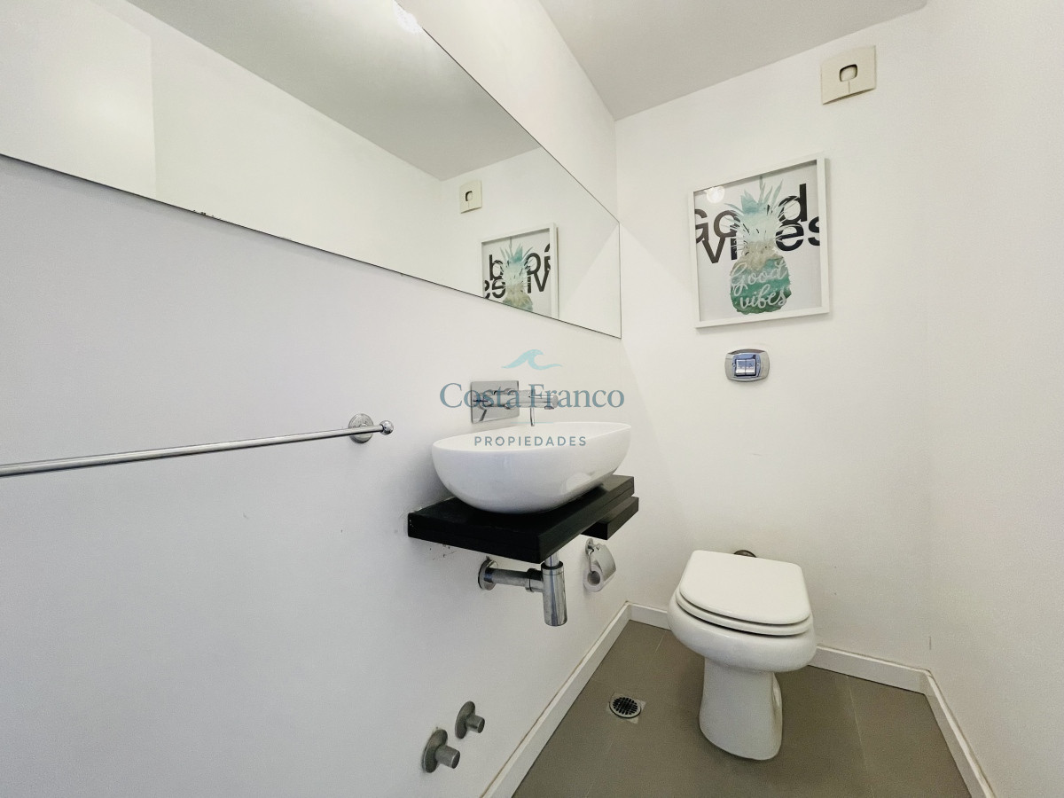 Con capacidad de 5 personas cuenta con dos dormitorios con dos baños en suite más toilette. Living comedor, cocina completa, terraza al frente y garaje.