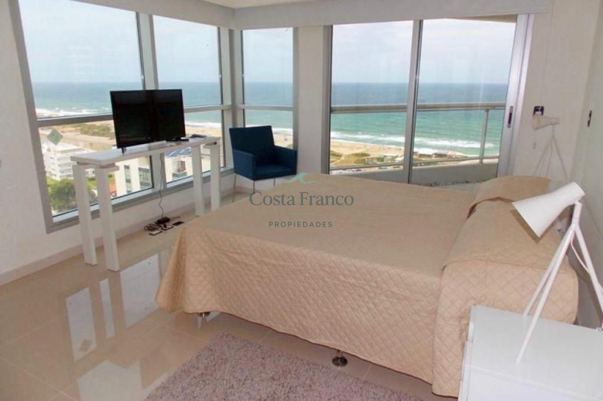 Muy buena planta distribuida en tres dormitorios que se funden en el horizonte marino. Dormitorio principal en suite con salida al balcón, dos baños completos, más toilette. Amplio living comedor con grandes ventanales que proporcionan una iluminación natural espectacular mirando el mar hacia La Barra de Punta del Este. Cocina definida con doble circulación y vista al mar. Más dependencia de servicio con baño. Espacioso balcón con parrillero propio.