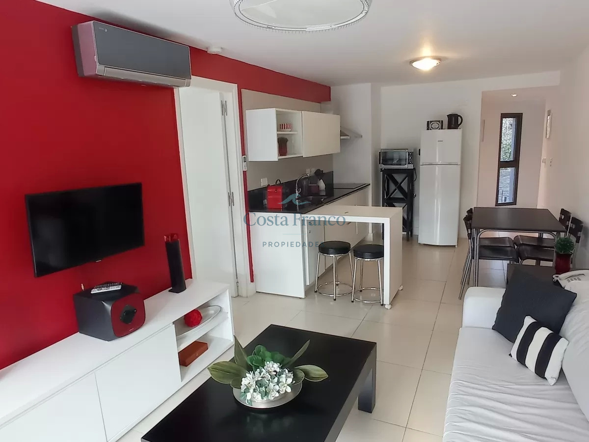 En su interior le ofrece 1 Dormitorio en suite con placard, 2 Baños, una Cocina integrada que le brinda comodidades como Anafe - Heladera Con Freezer- Horno - Placard y campana, ademas de un Living Comedor hermoso y bien distribuido con T.V y una hermosa vista.