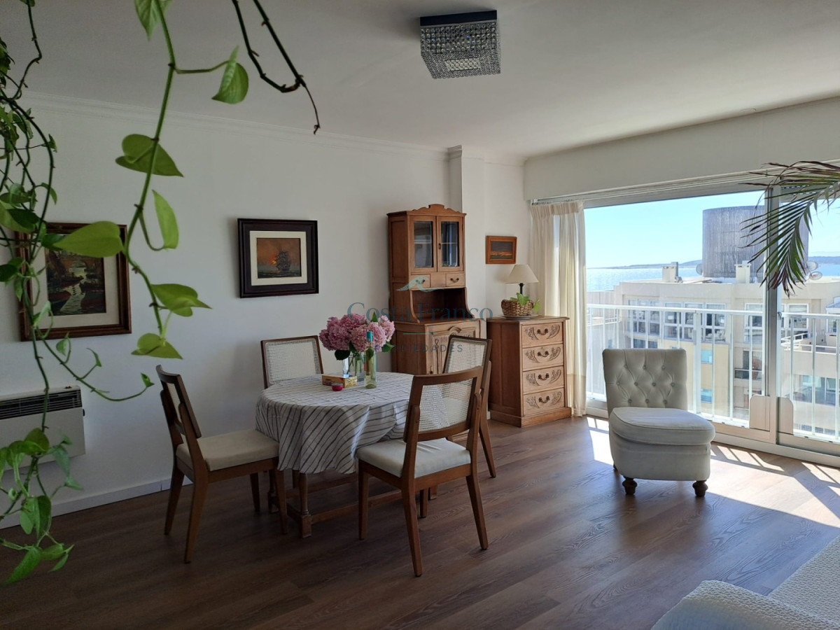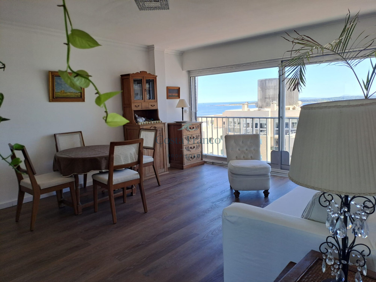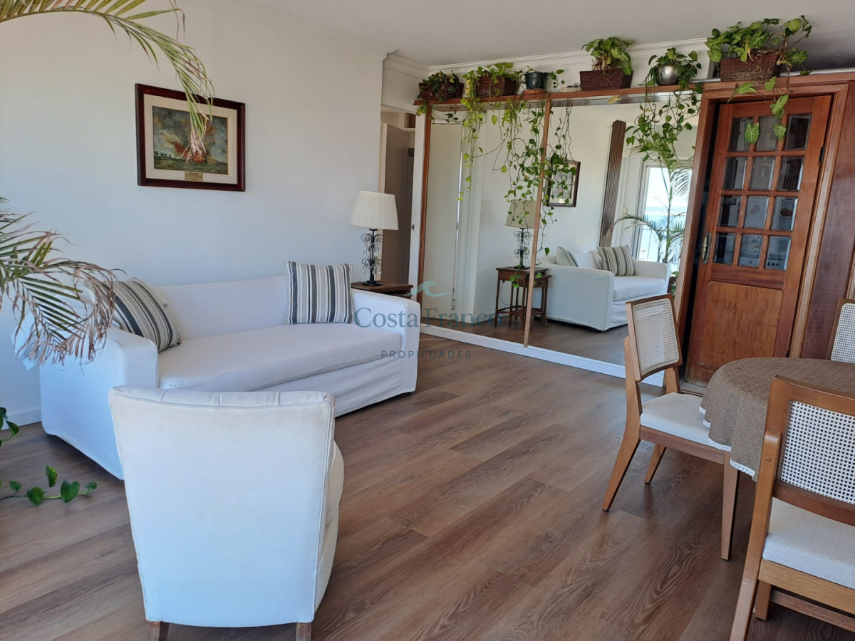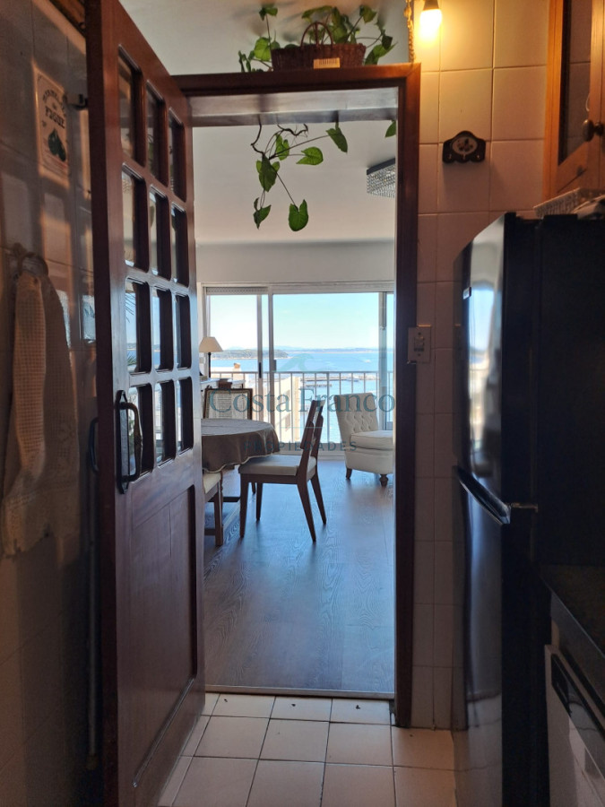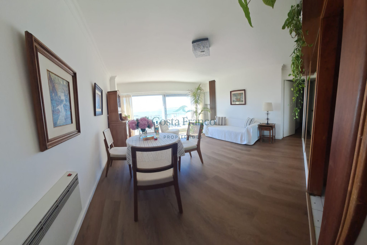 2 dormitorios, 2 baños, amplio living comedor con vista al mar, cocina definida.