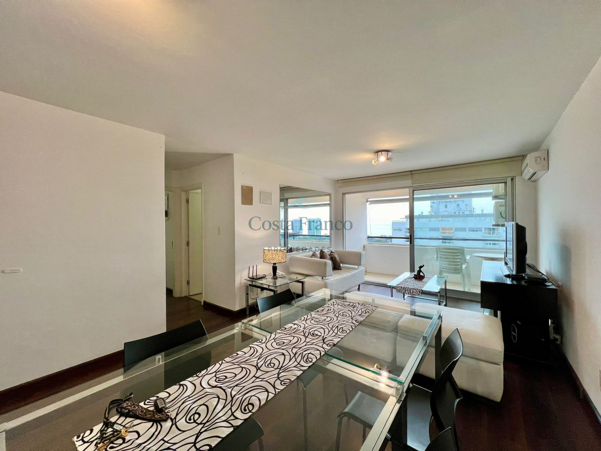 Balcón al frente con vista al mar, living comedor, cocina definida con terraza lavadero, dos dormitorios y dos baños (el principal en suite).