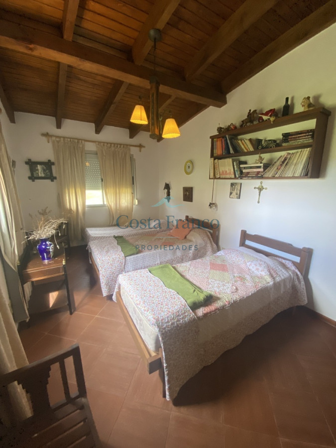 La casa cuenta con gran living comedor con estufa de leña, cocina, 4 dormitorios, 2 baños, linda galería tipo barbacoa con gran parrillero y bar, habitación de servicio con baño pegado a la piscina y lavadero.